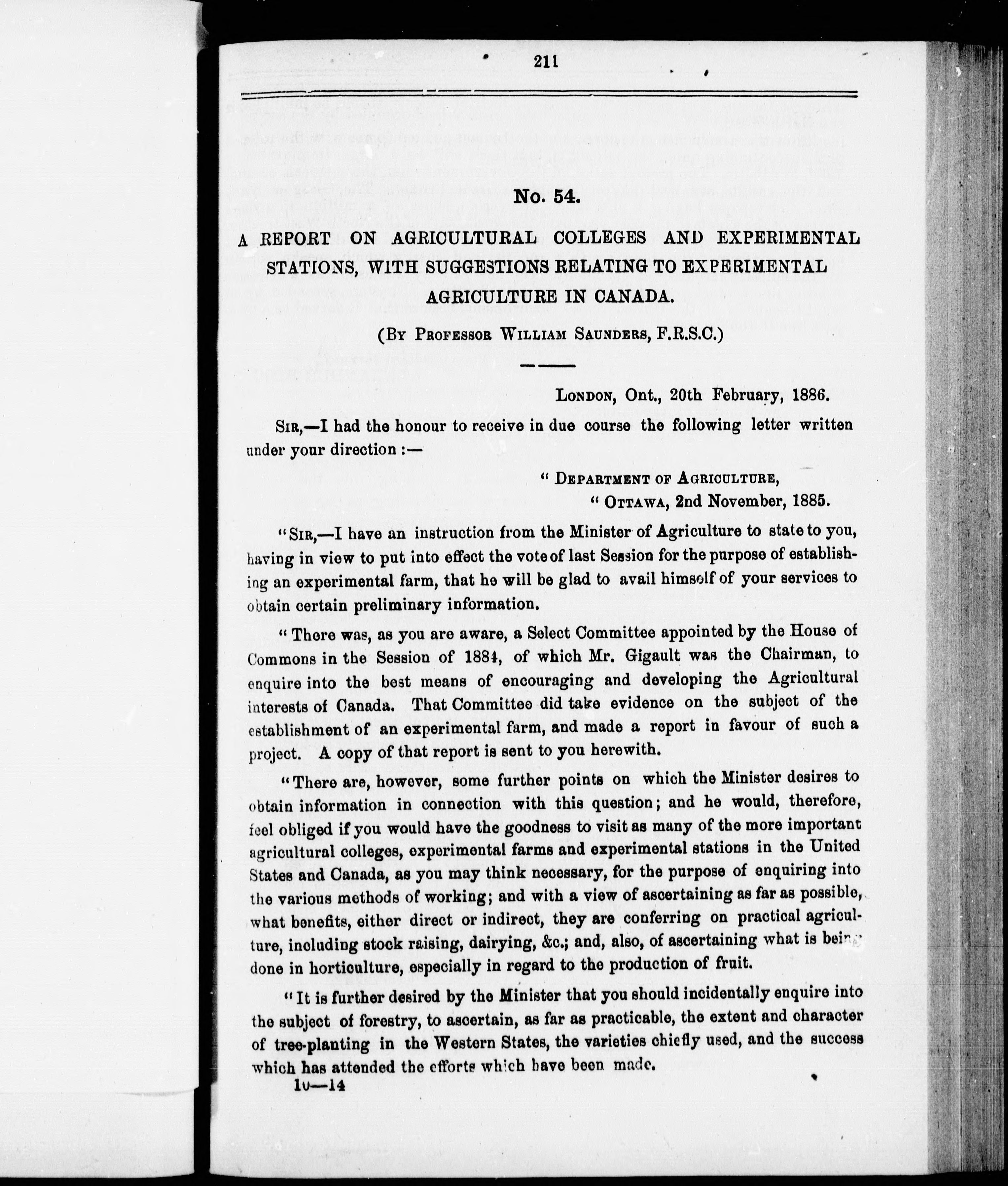 Report on agricultural colleges and experimental stations with suggestions relating to experimental agriculture in Canada
