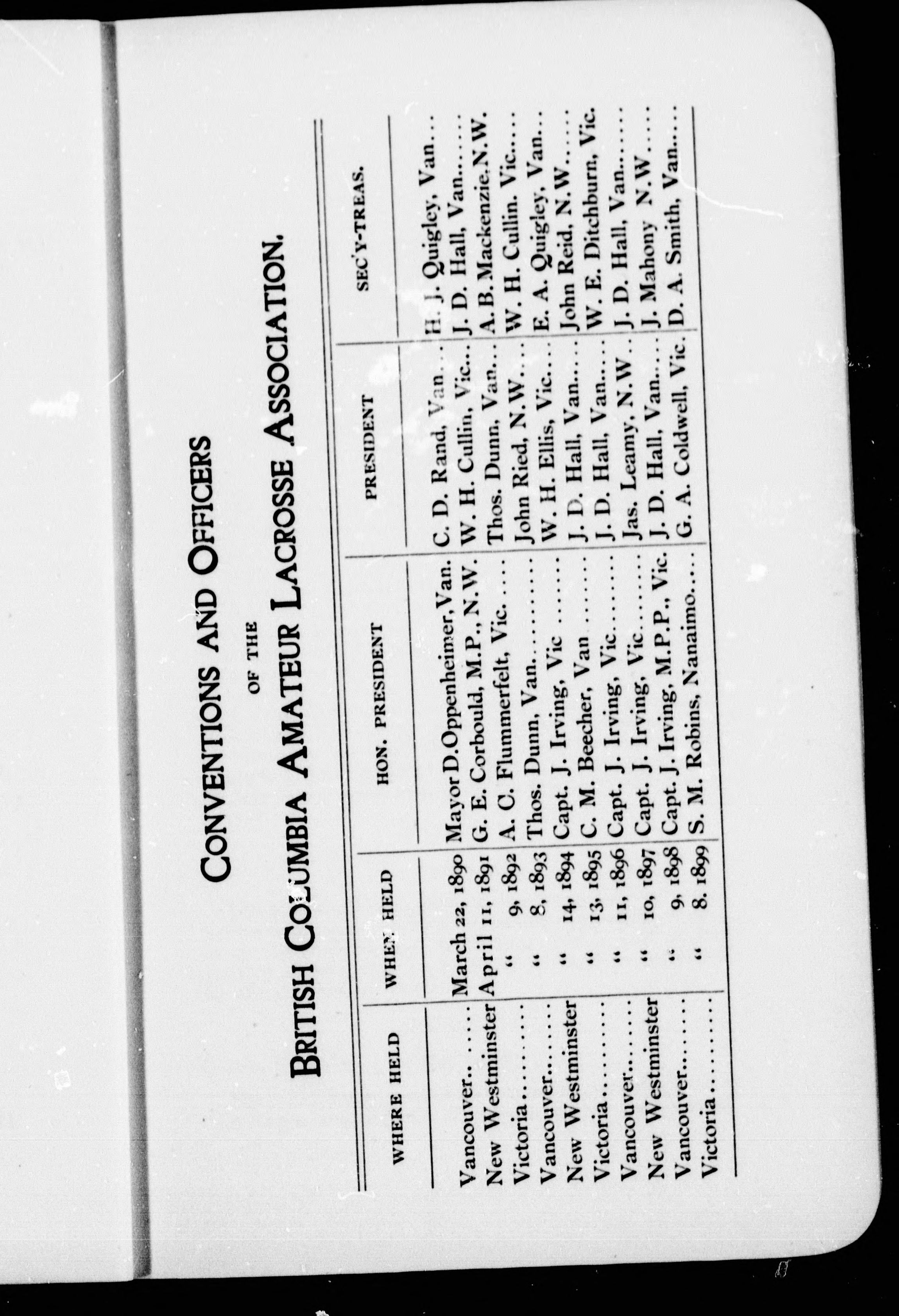 Constitution and rules of the British Columbia Amateur Lacrosse Association : adopted March 22nd, 1890, revised April 8th, 1899. - Adresse bibliographique