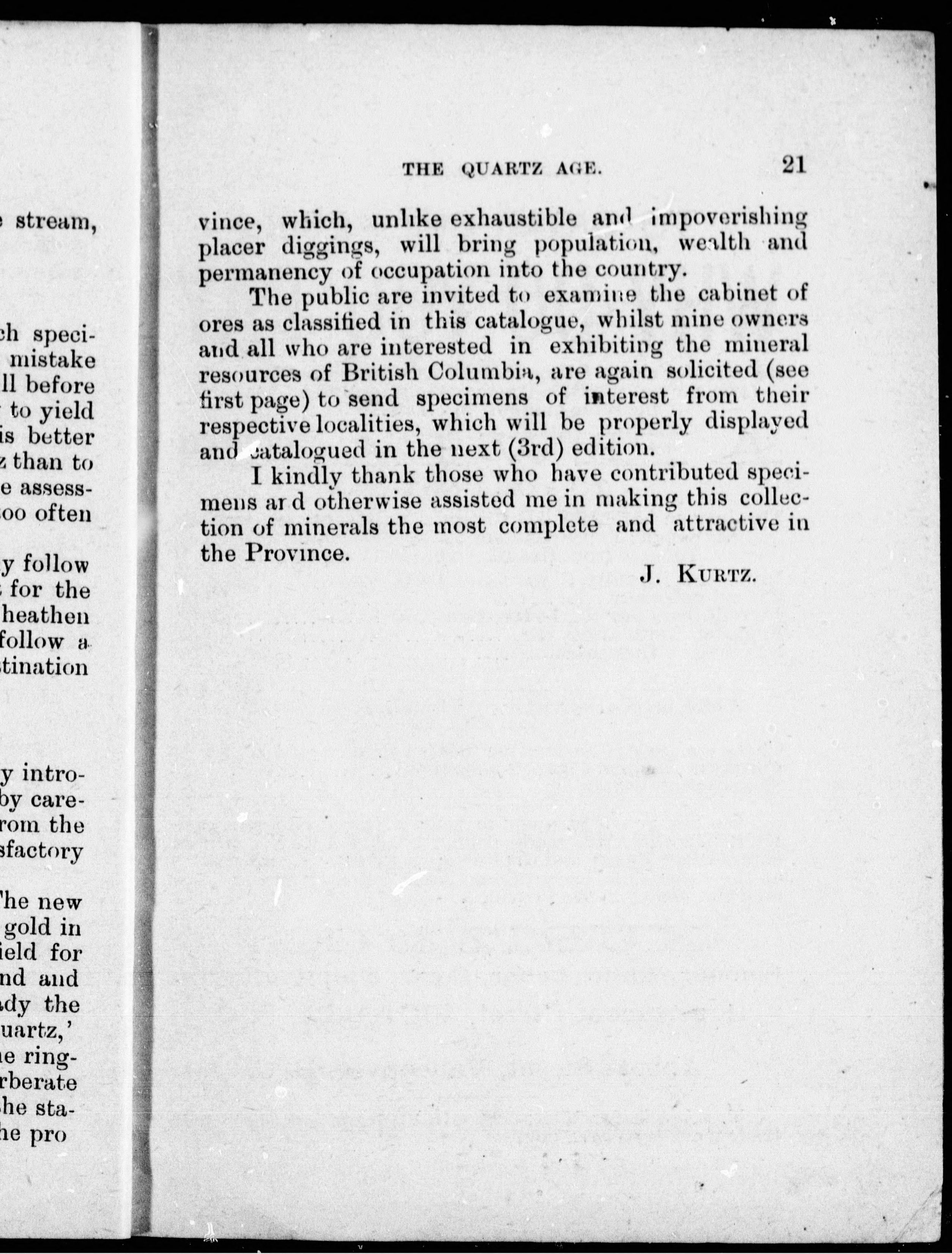 - Catalogue of British Columbia minerals as exhibited in specimen case at Kurtz & Co's cigar store, corner Government and Trounce Streets, Victoria, B.C..