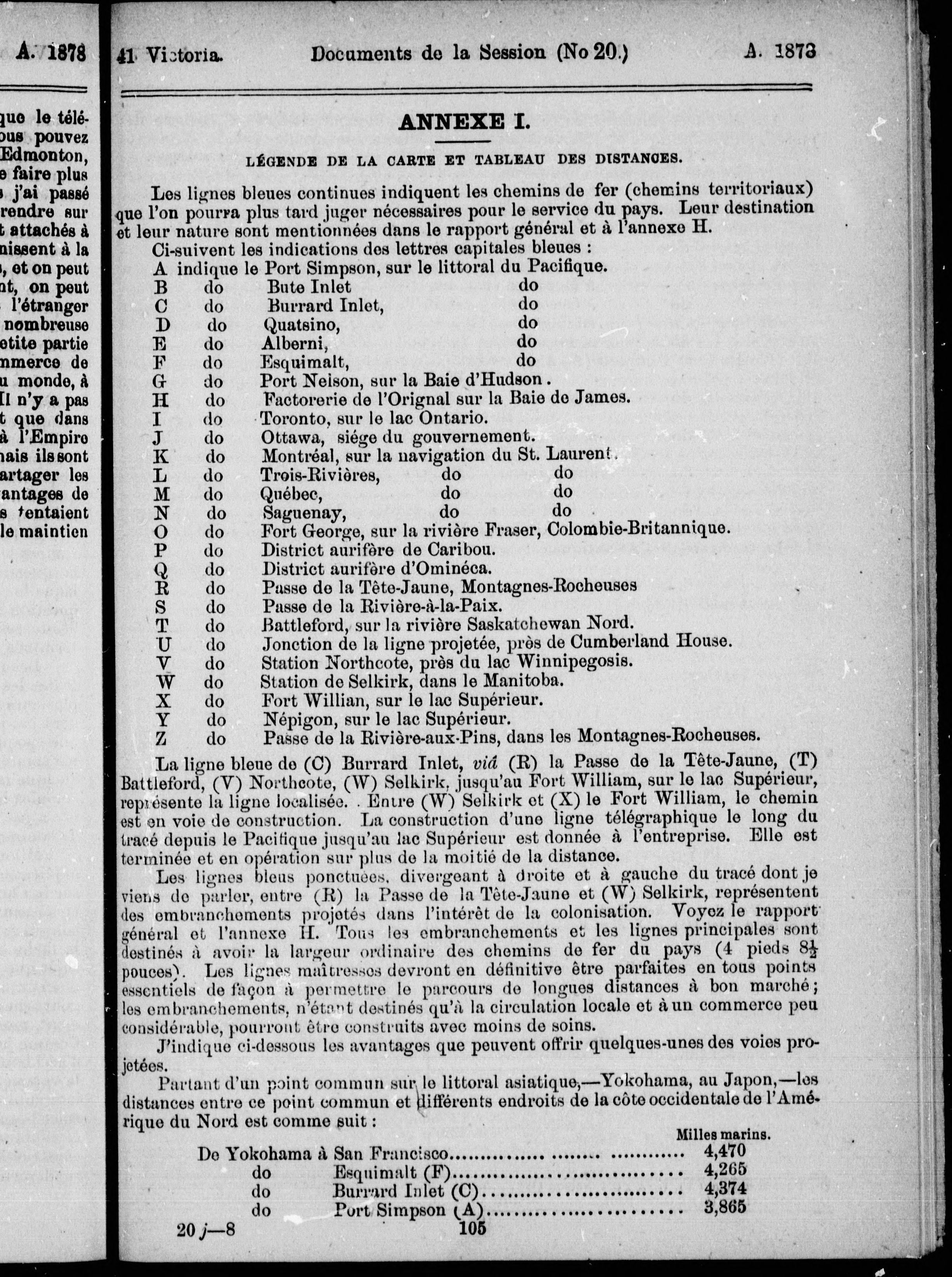 Rapports et documents relatifs au tracé de la route et au choix d'un havre terminus ouest, 1878 /