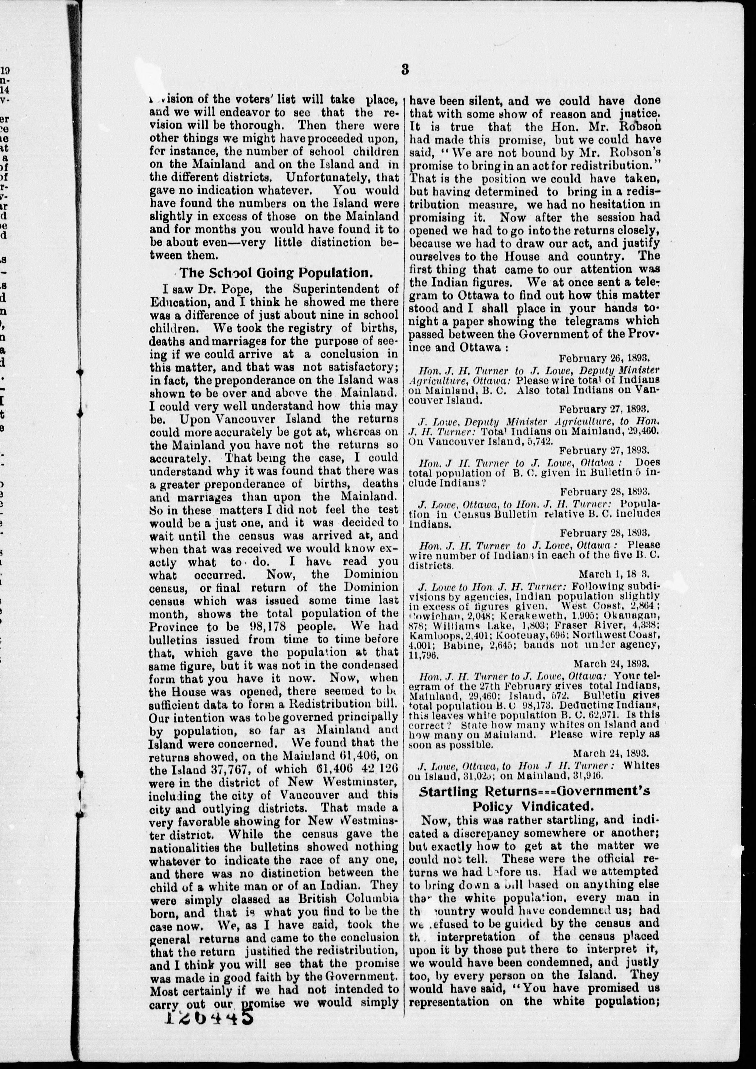 - Facts and figures : mass meeting addressed by the premier at New Westminster : equal justice by the administration to all sections of the province alike clearly proved, Parliament Buildings and redistribution policy of the government triumphantly vindicated.