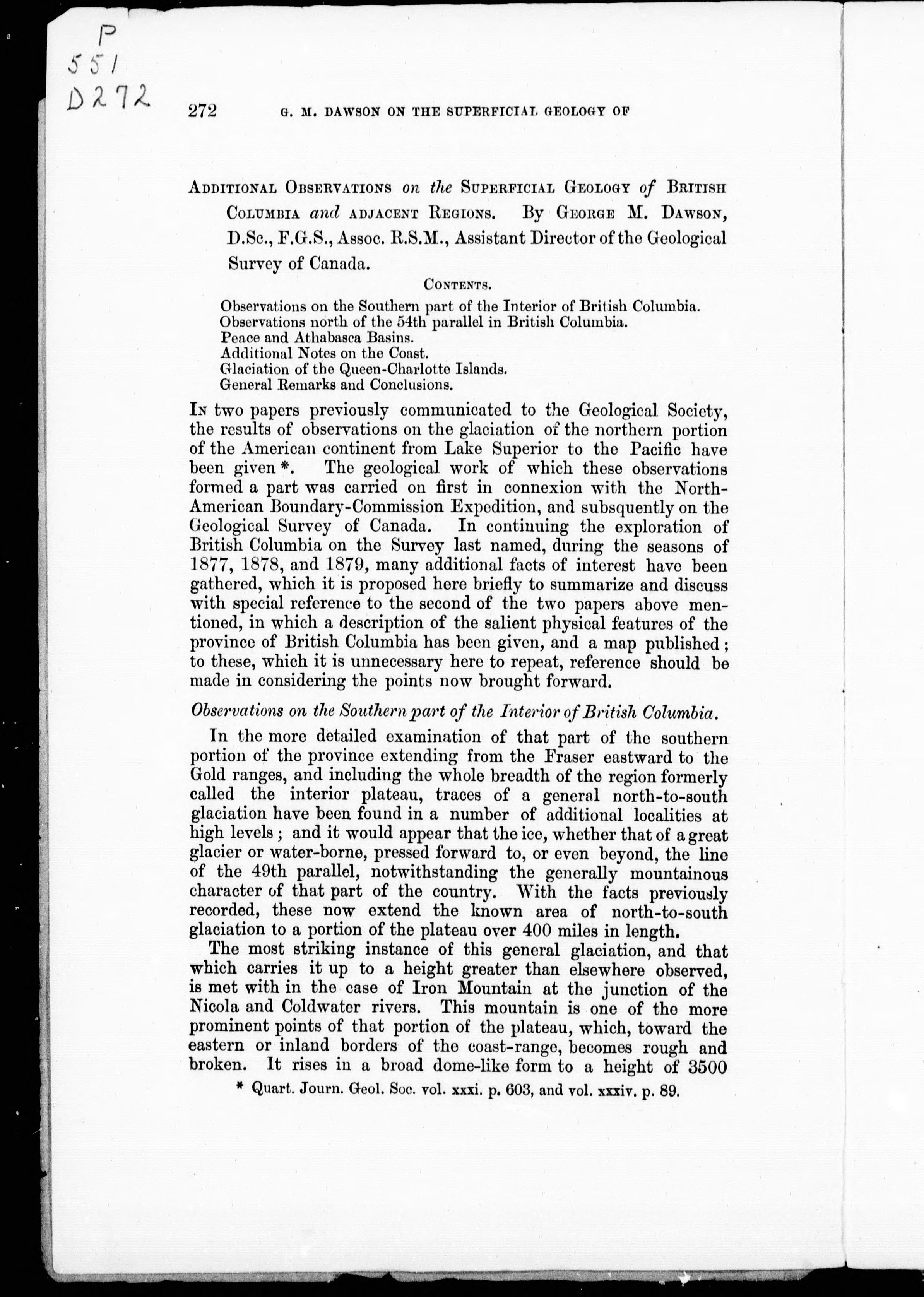 Running title: G.M. Dawson on the superficial geology of British Columbia and adjacent regions.
