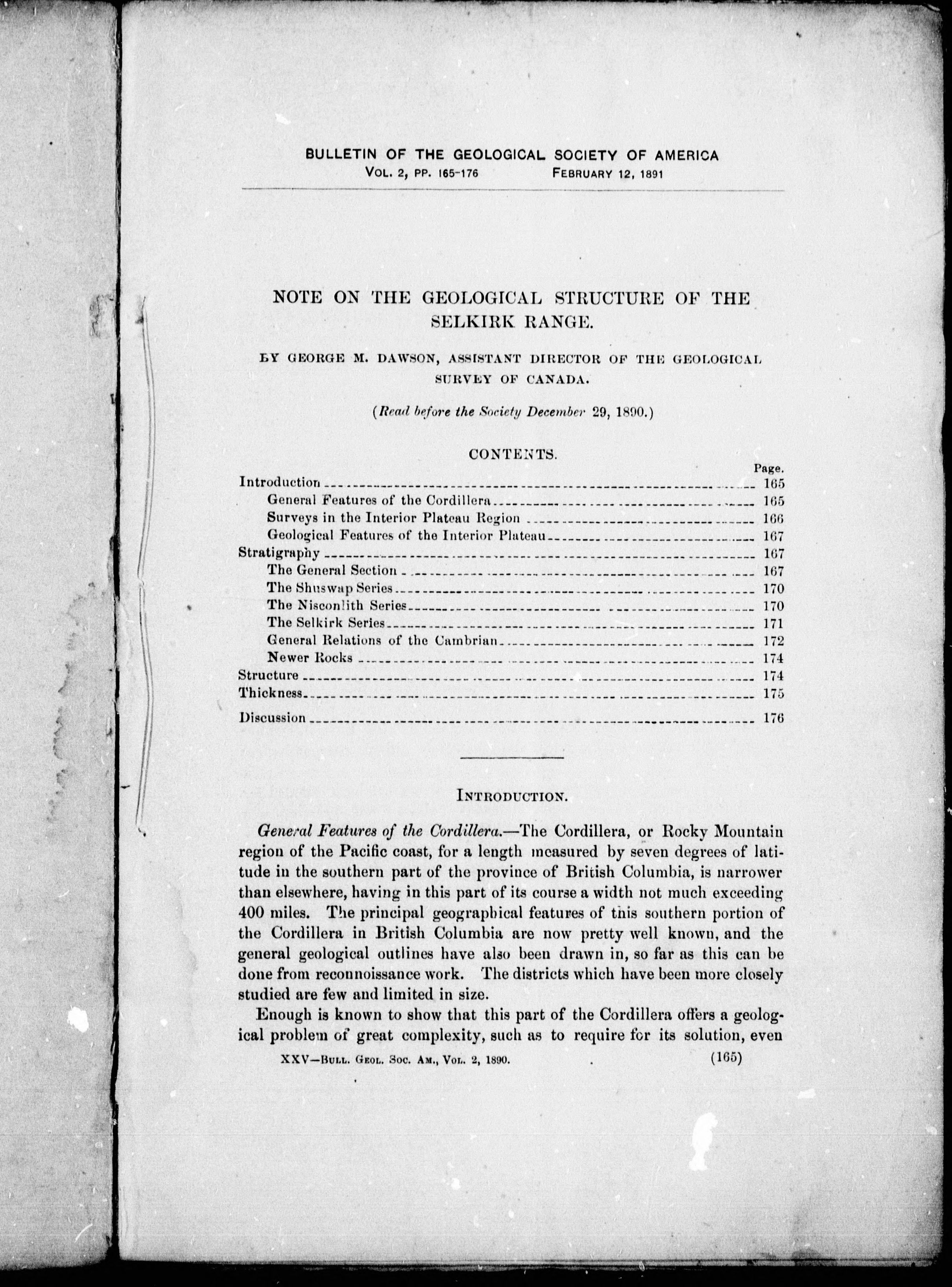 From Bulletin of the Geological Society of America, Vol. 2, pages 165-176.