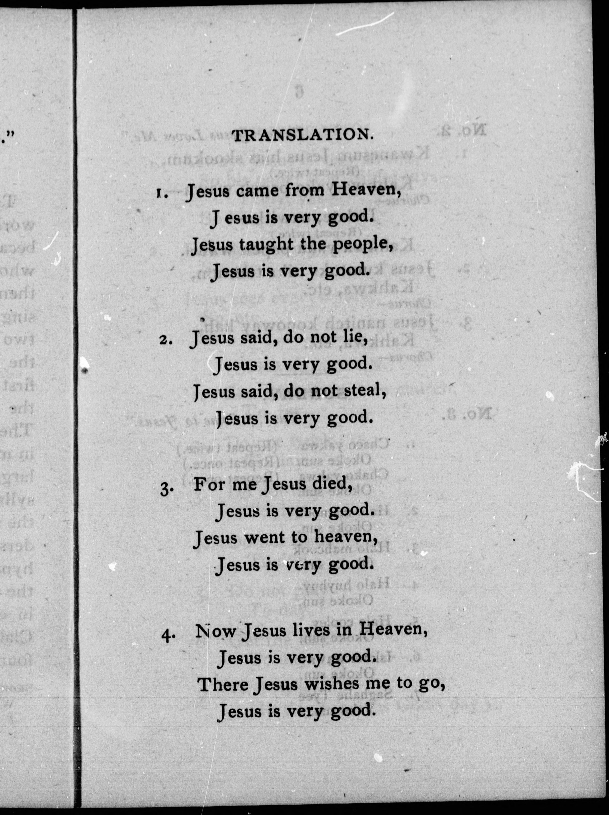 Chinook hymns with English translation on opposite pages.