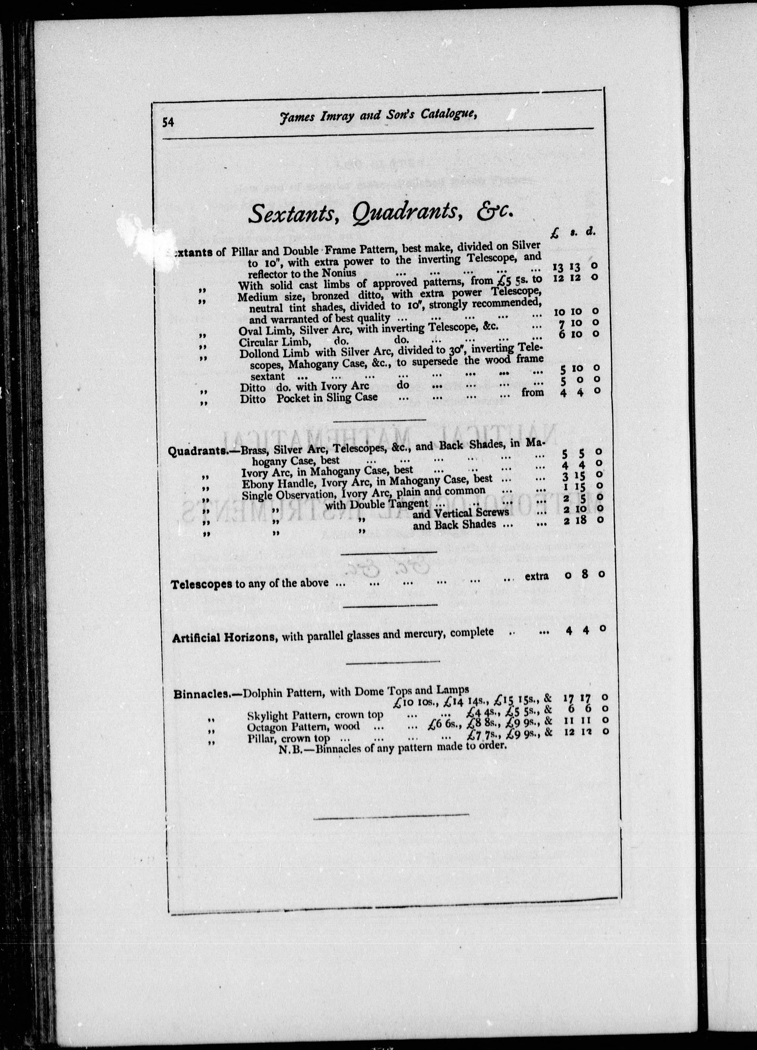 With: Charts, works on navigation, and nautical instruments, andc., and c., and c, published by James Imray and Son.