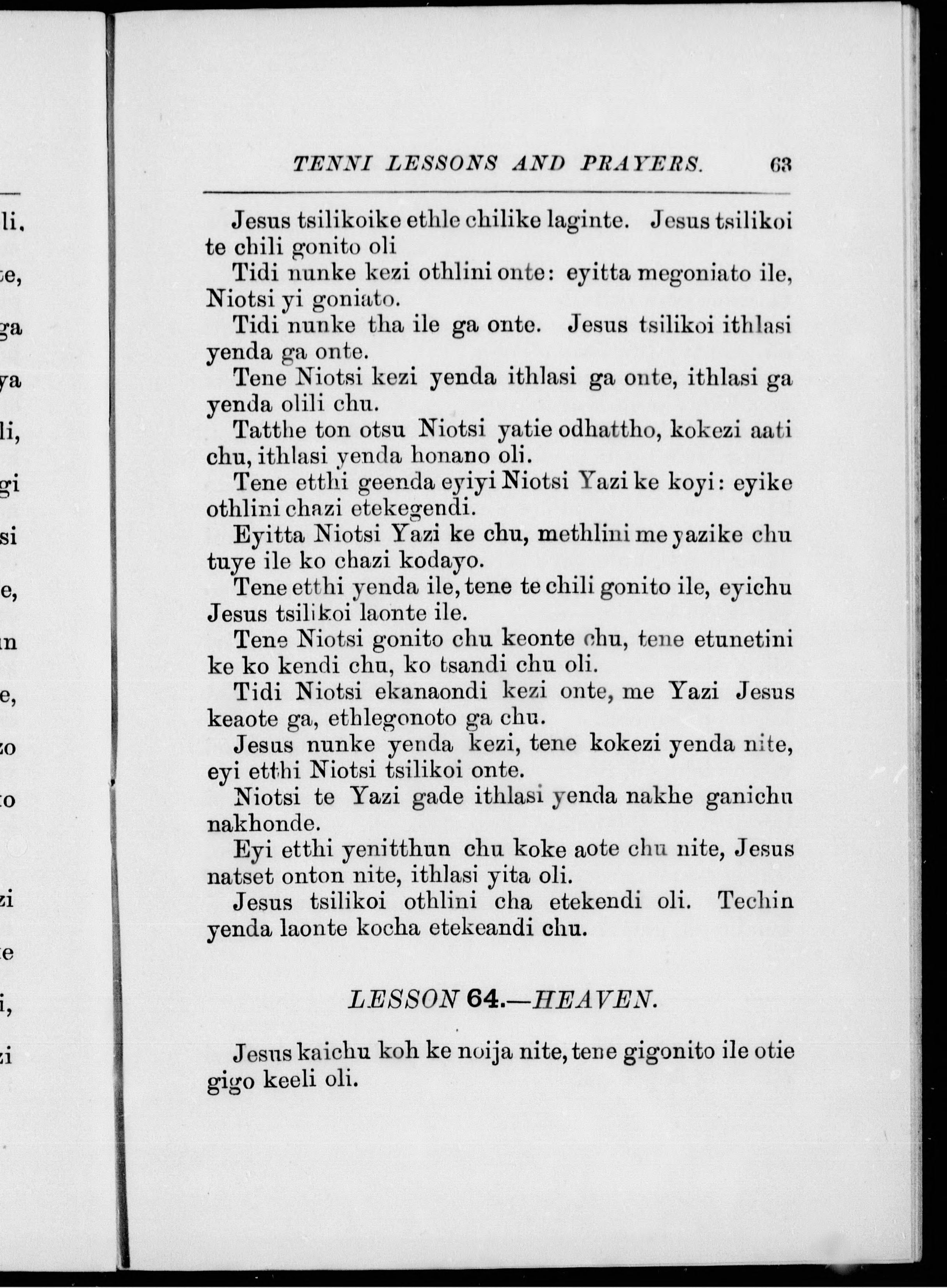 Lessons and prayers in the Tenni or Slavi language of the Indians of Mackenzie River, in the North-West Territory of Canada.