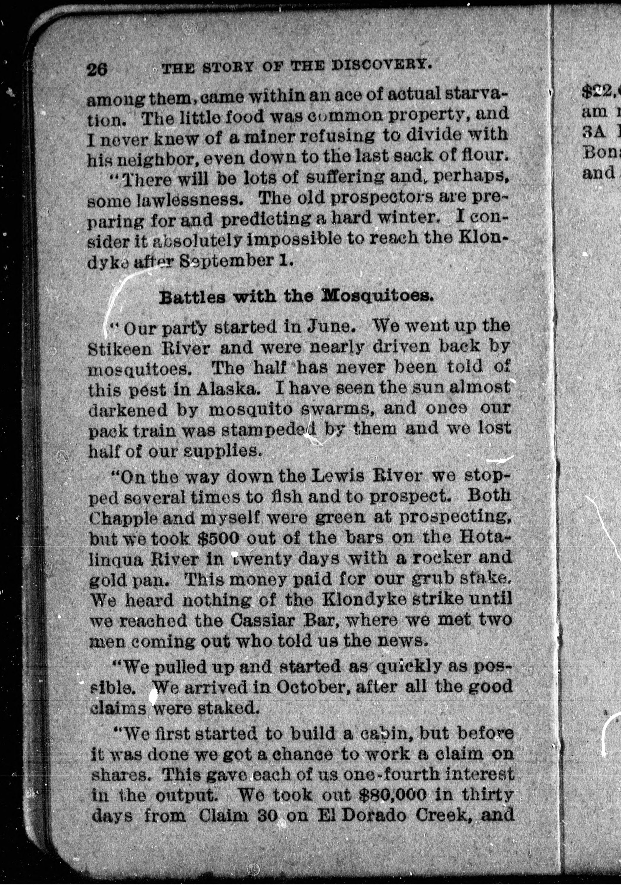 The little Klondyke nugget : story of the discovery: official reports, who ought to go, medical advice, how to avoid many hardships, best outfit, shortest routes, precious items about mining useful to all, Canadian customs duties, maps and illustrations, calendar, department for expense account, receipts, memoranda, etc., etc. : U.S. and Canada mining laws in full.