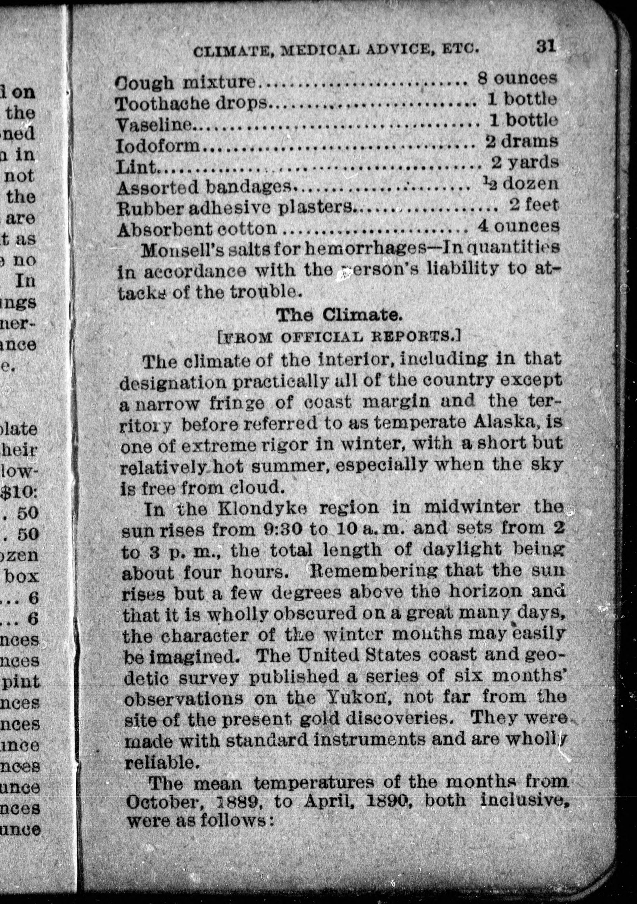 The little Klondyke nugget : story of the discovery: official reports, who ought to go, medical advice, how to avoid many hardships, best outfit, shortest routes, precious items about mining useful to all, Canadian customs duties, maps and illustrations, calendar, department for expense account, receipts, memoranda, etc., etc. : U.S. and Canada mining laws in full.