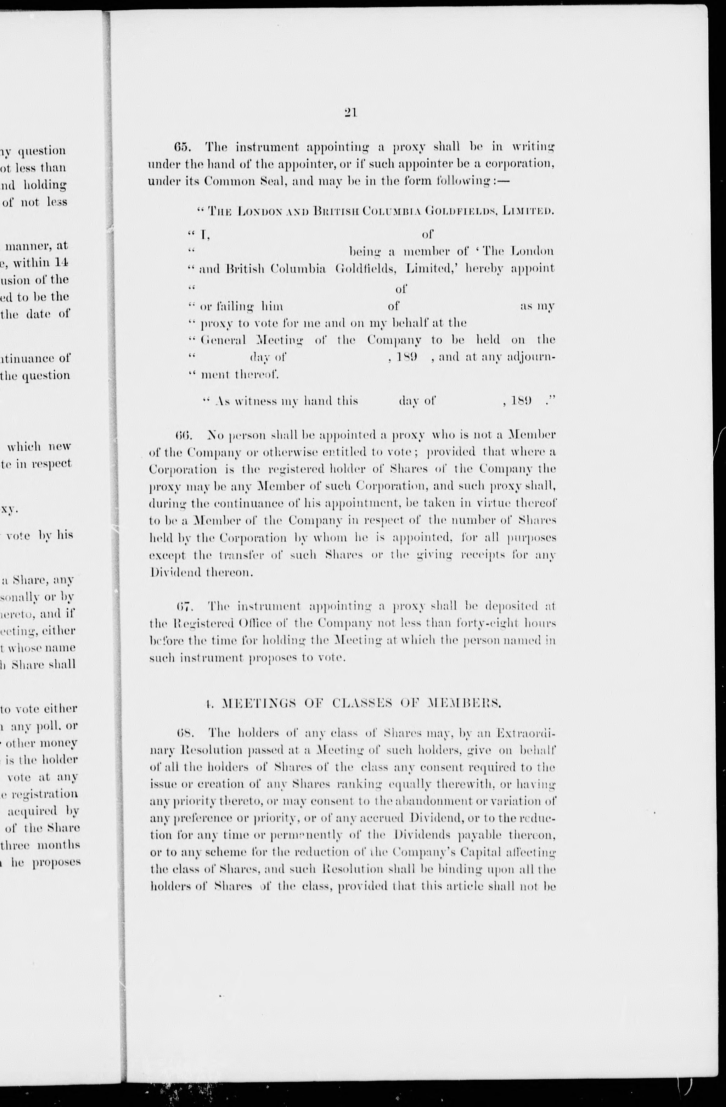 Memorandum and articles of association of the London & British Columbia Goldfields, Limited.