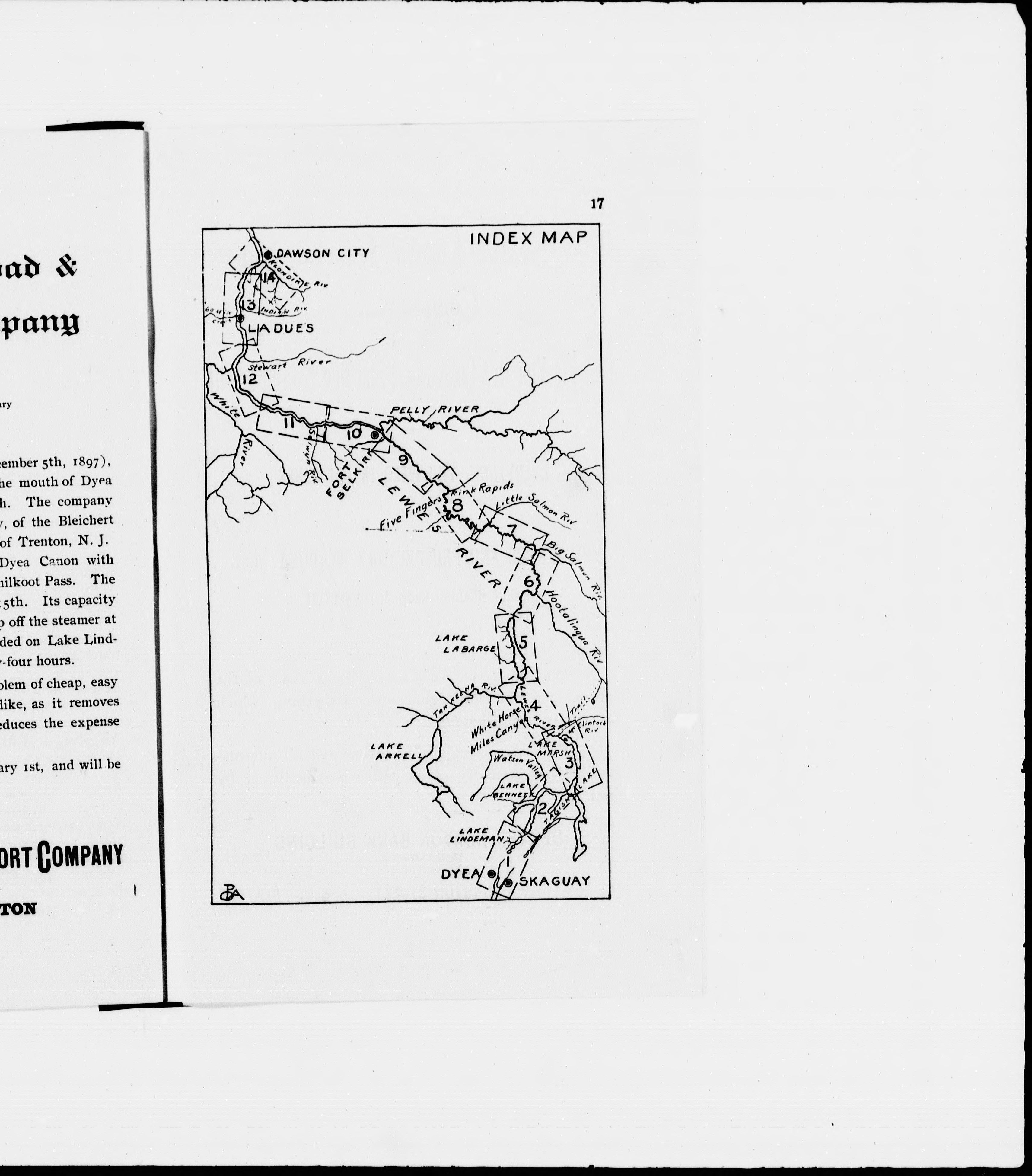 Map-guide, Seattle to Dawson : over the Chilkoot, through the lakes and down the Yukon : showing the White Horse and other rapids, manner of portage, where to build boasts, etc., etc.