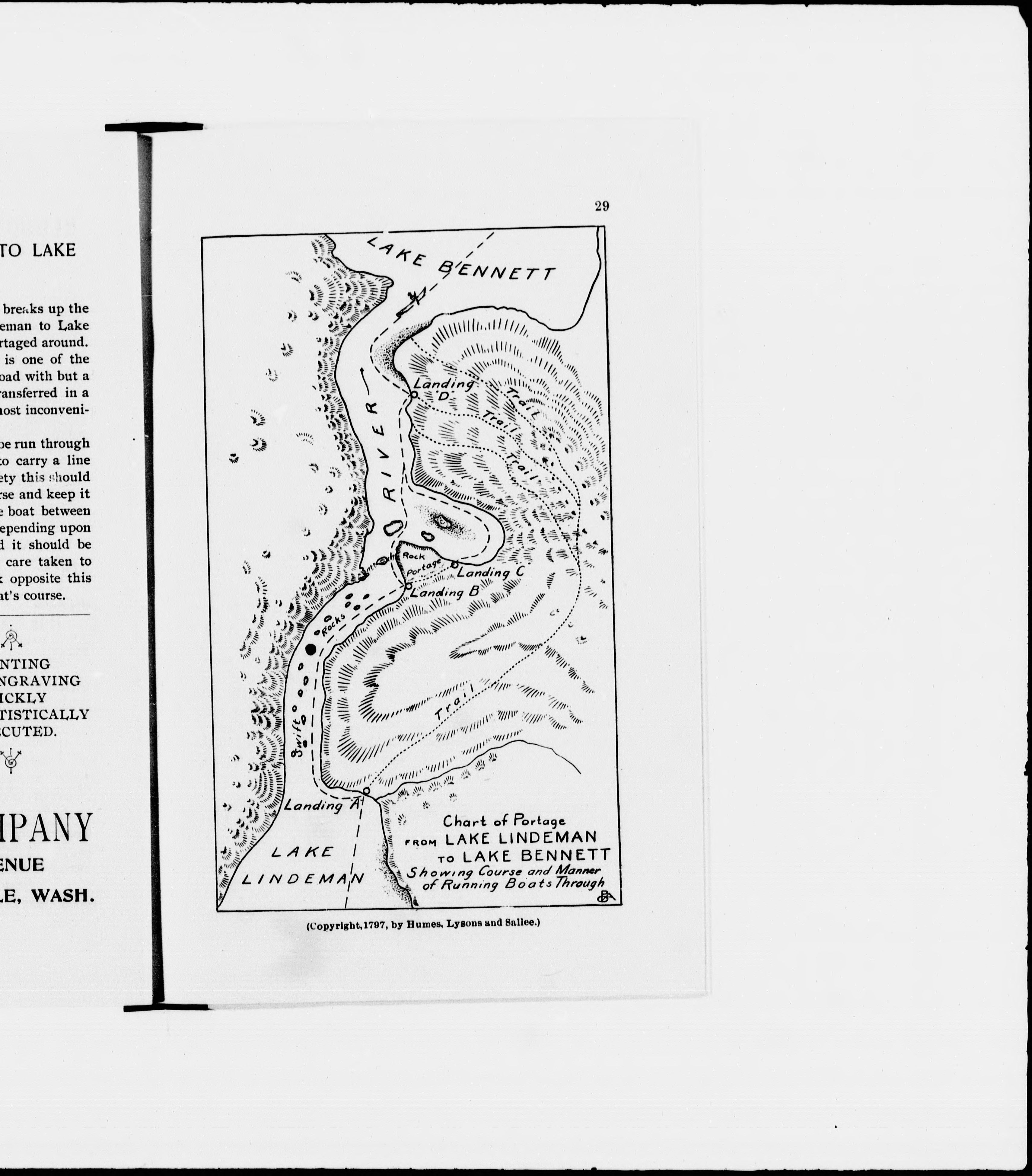 Map-guide, Seattle to Dawson : over the Chilkoot, through the lakes and down the Yukon : showing the White Horse and other rapids, manner of portage, where to build boasts, etc., etc.
