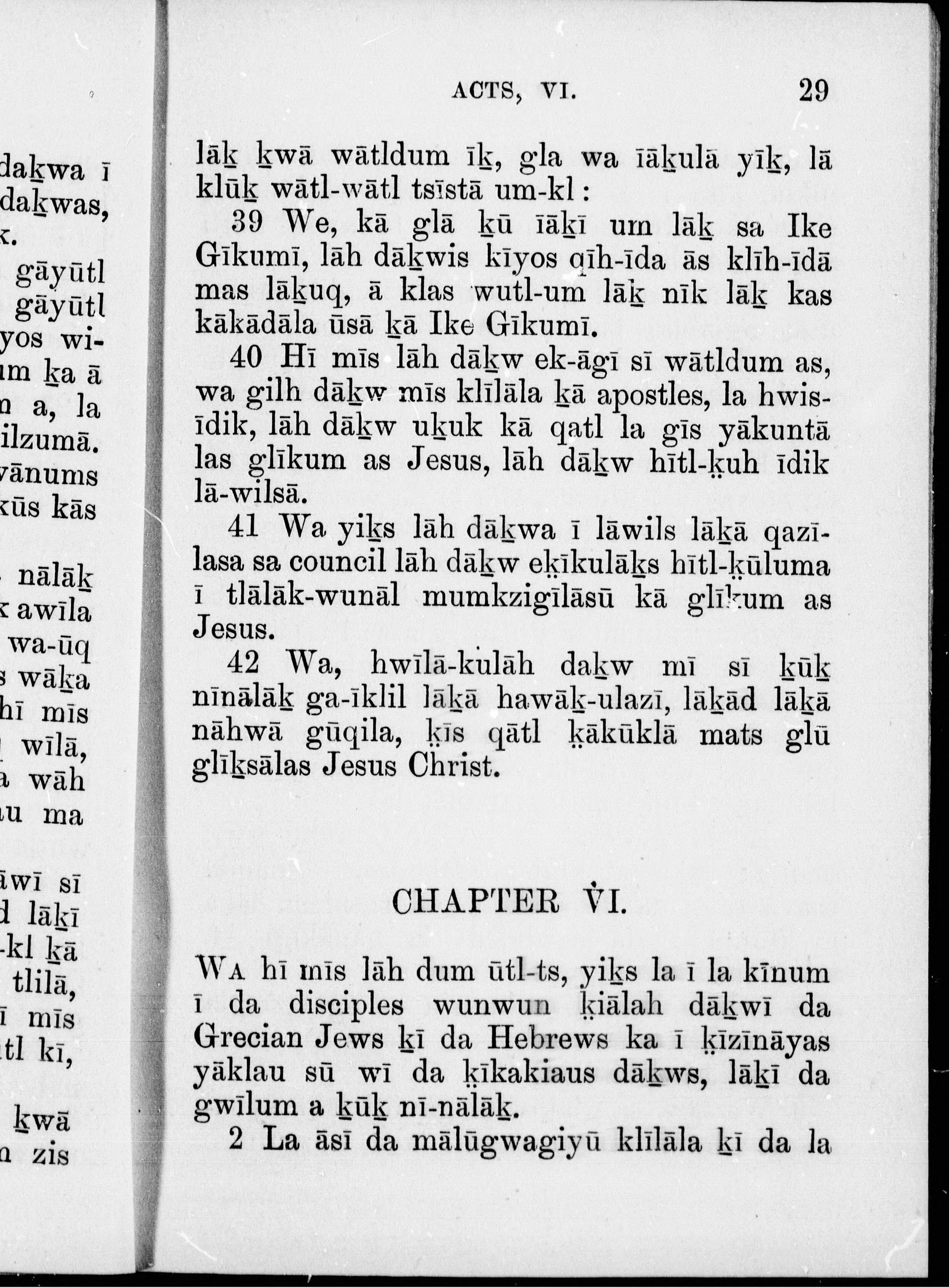 Bible. N.T. Acts. Kwakiutl. Hall. 1897.