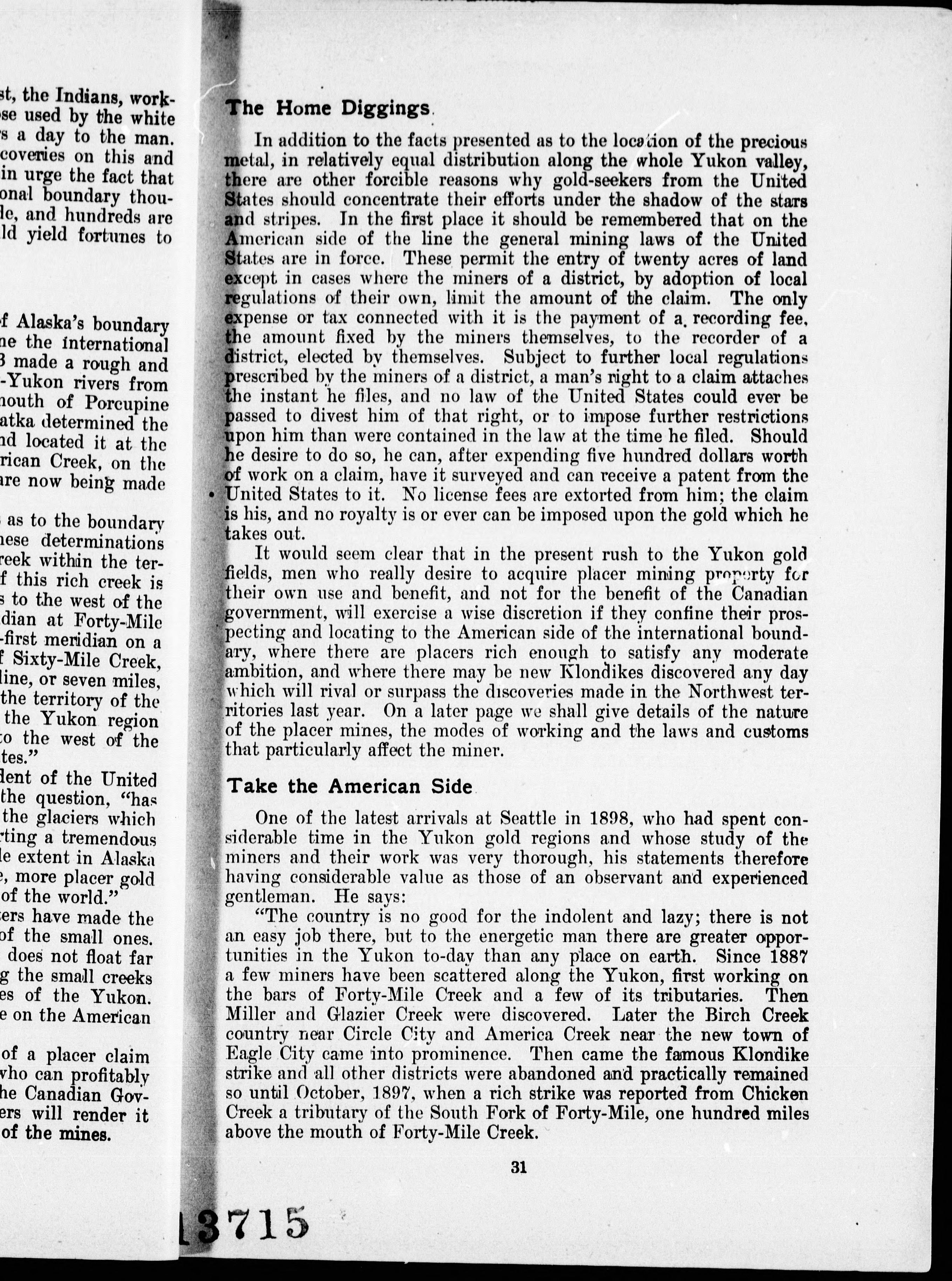 Klondike gold fields.