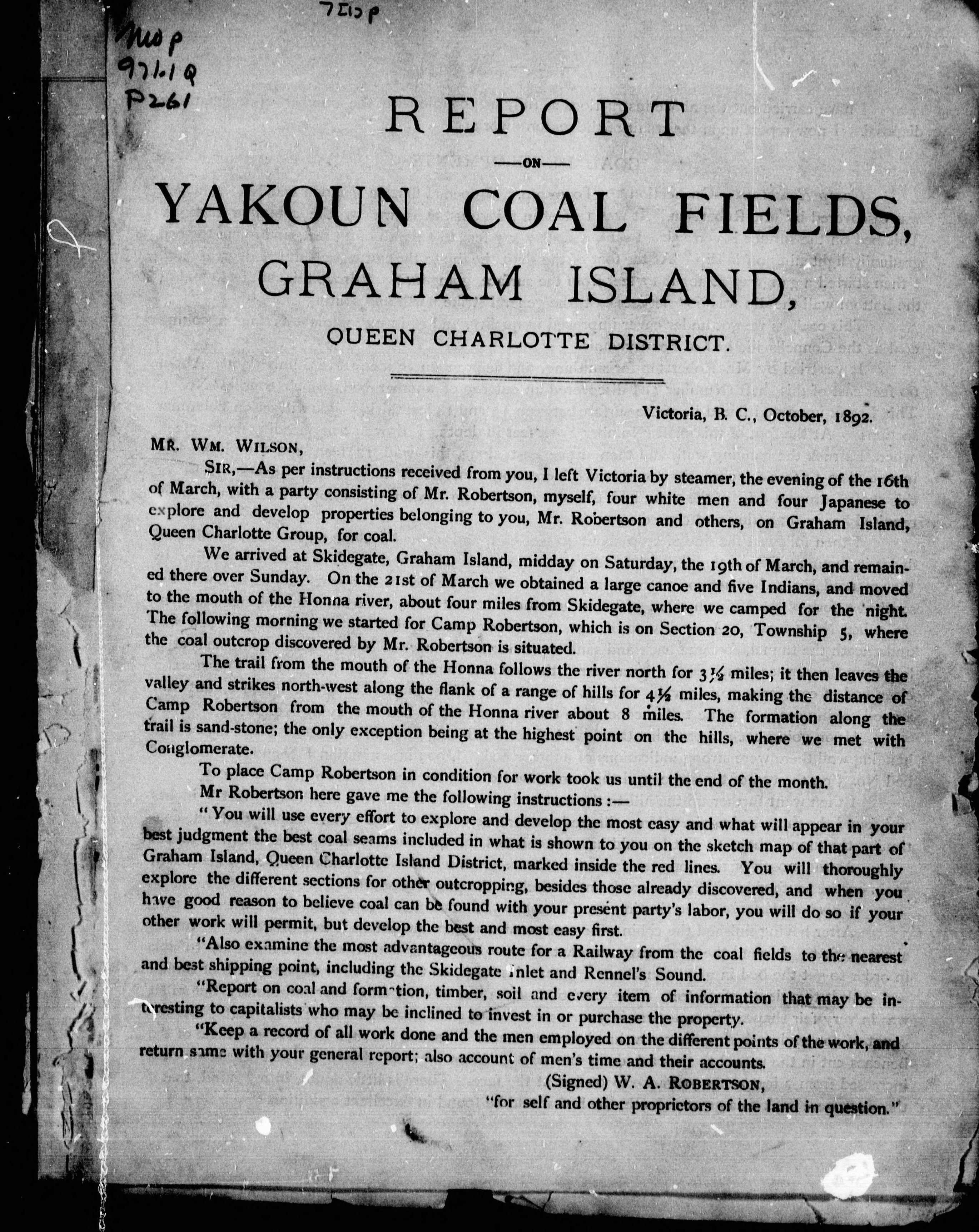 - Report on Yakoun coal fields, Graham Island, Queen Charlotte District
