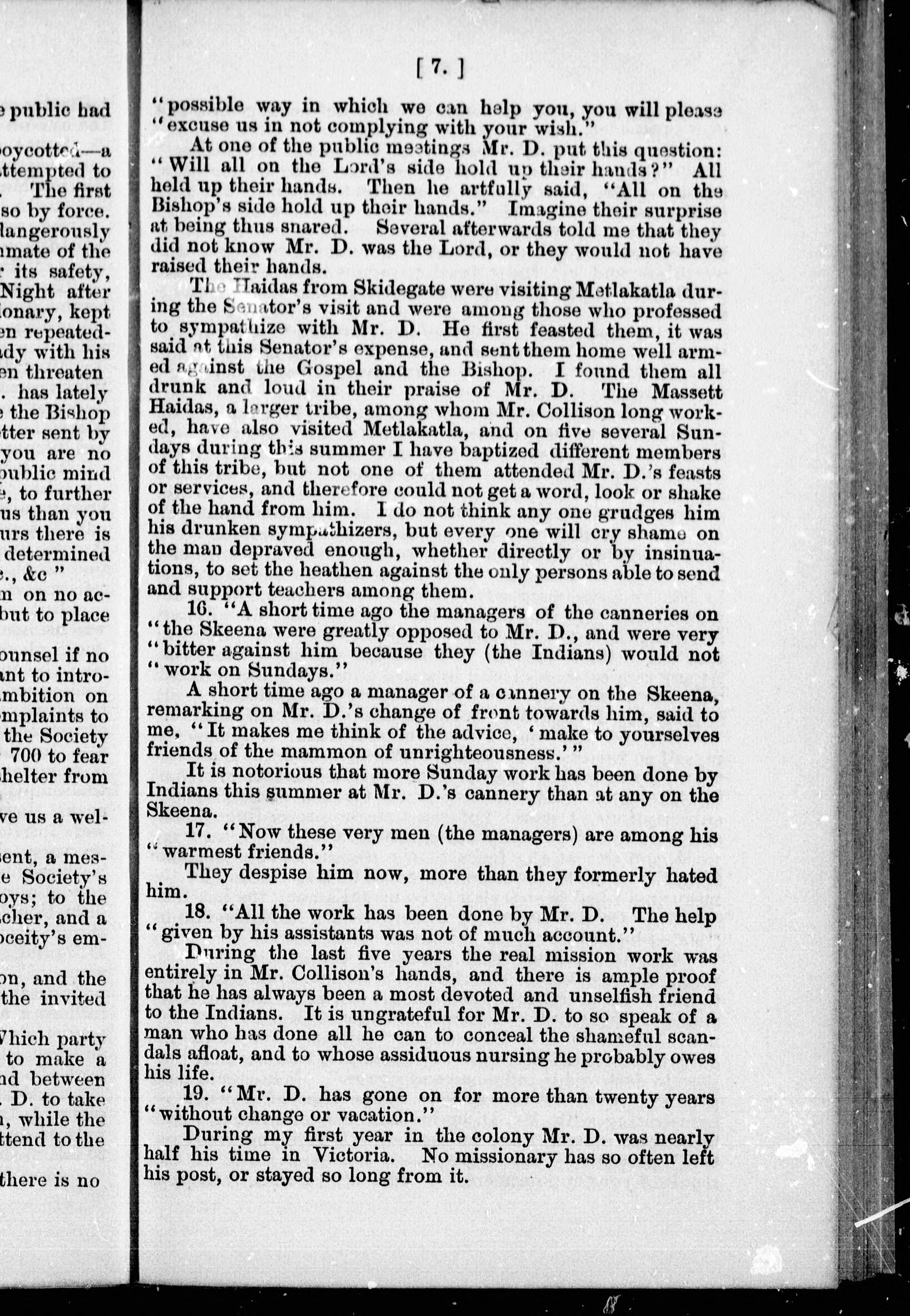 "In effect a listing of the wrongs committed by the missionary William Duncan in the eyes of the Church Missionary Society"--cf. A bibliography of British Columbia / by Barbara J. Lowther (numbers 620).