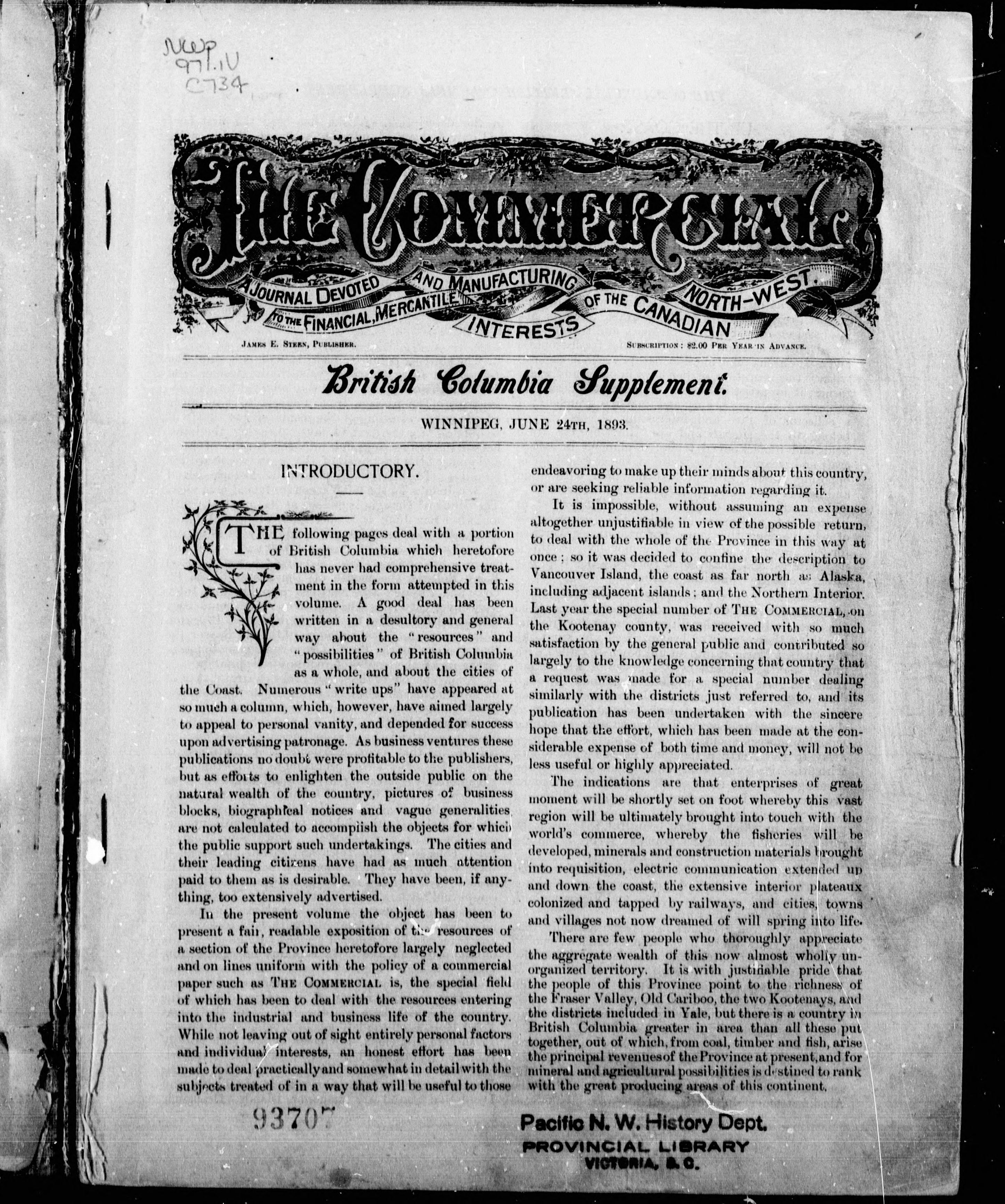 - Special supplement of the Commercial relating to Vancouver Island, the adjacent coast and northern interior British Columbia.