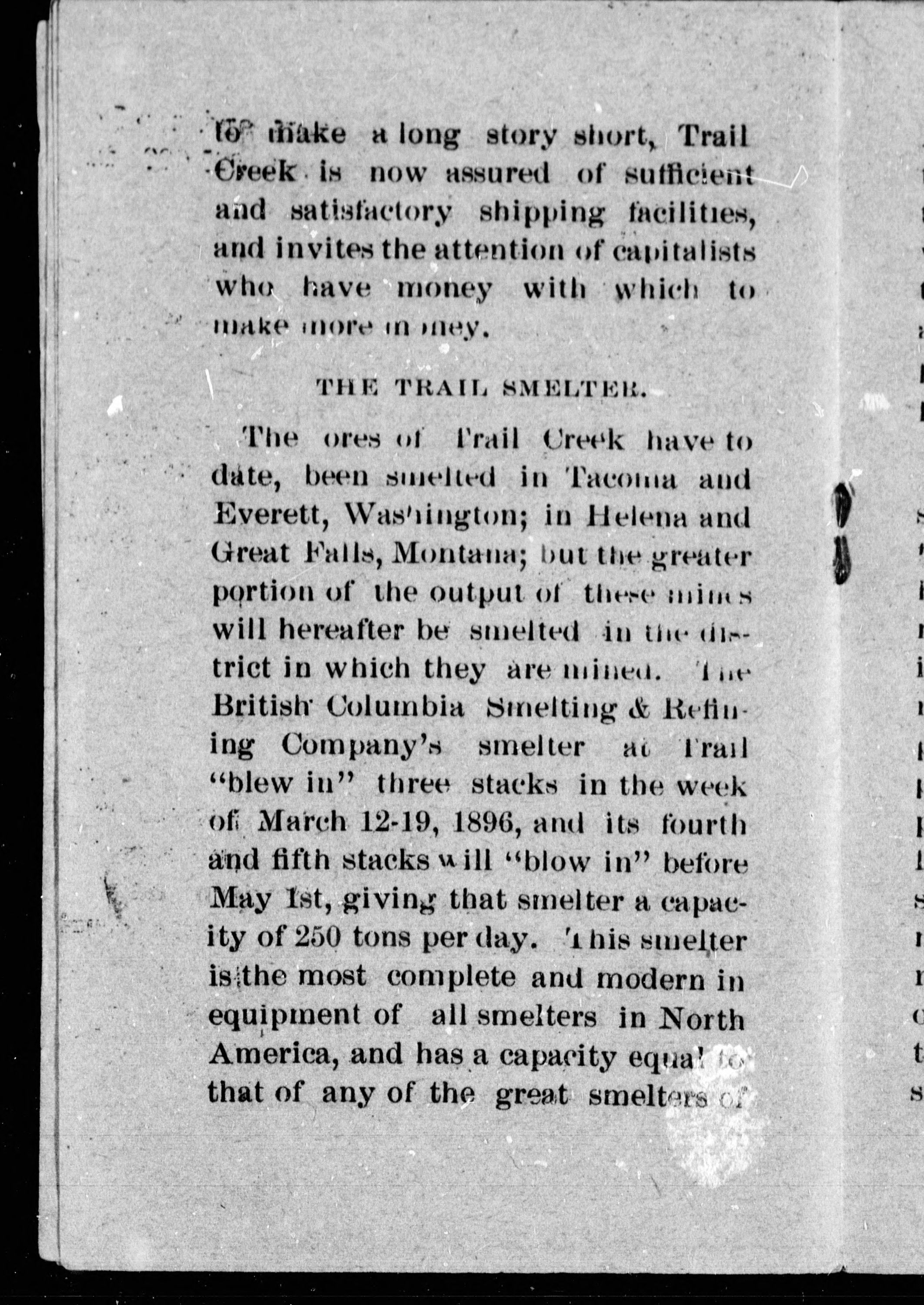 Trail, B.C. : Board of Trade of Trail, 1896.; 22 images, 20 avec recherche en texte intégral