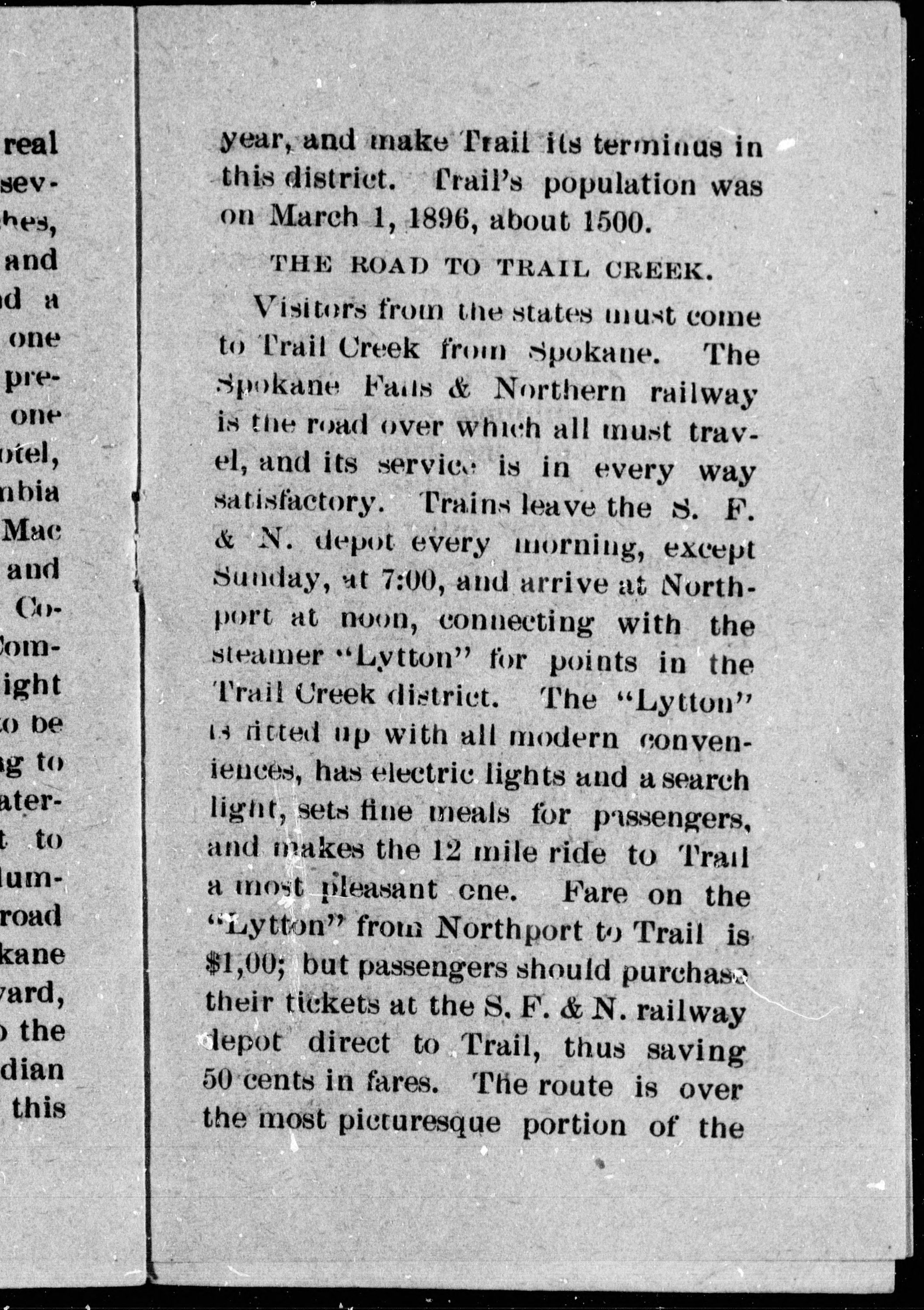 Trail, B.C. : Board of Trade of Trail, 1896.; 22 images, 20 avec recherche en texte intégral