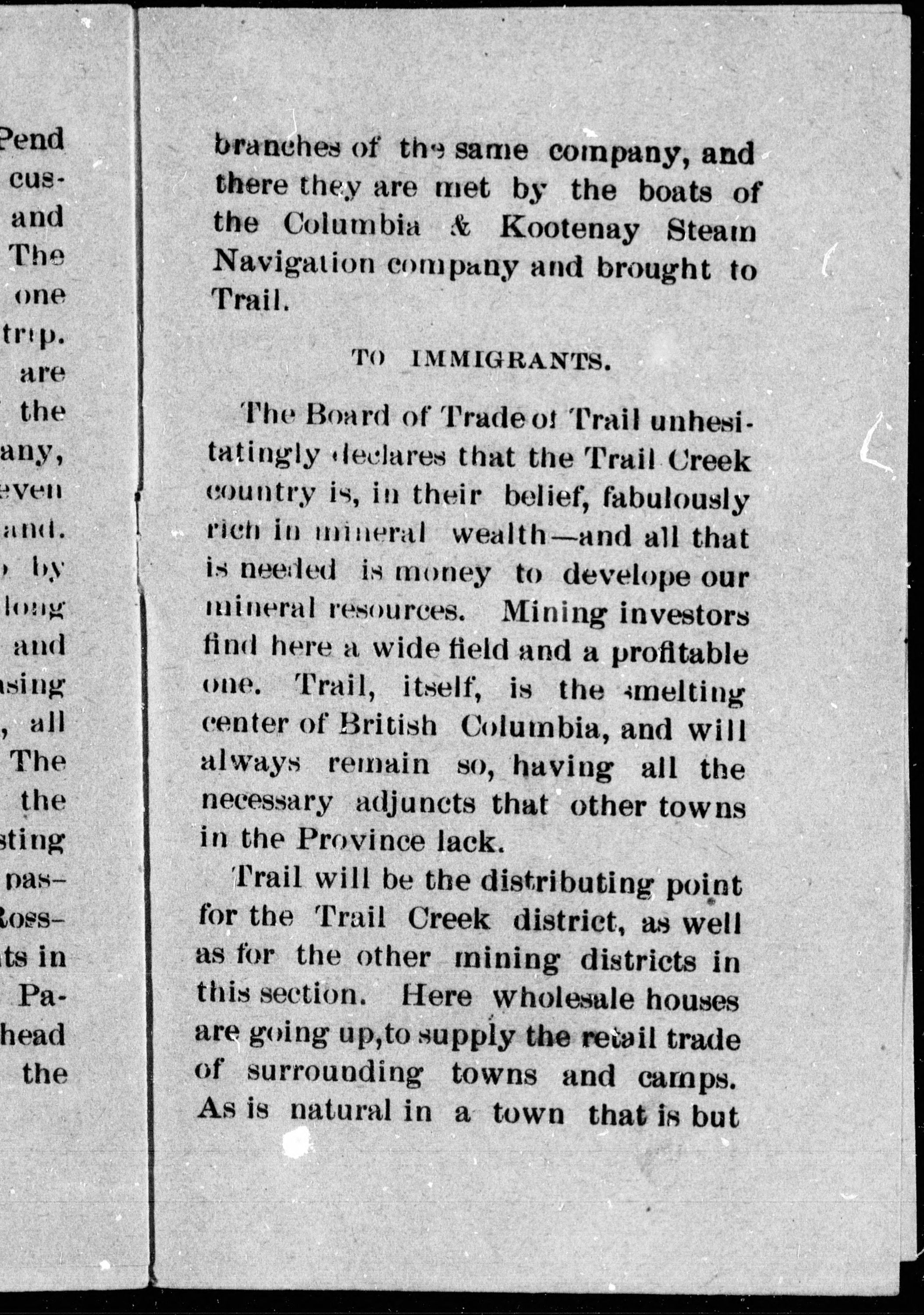 Trail, B.C. : Board of Trade of Trail, 1896.; 22 images, 20 avec recherche en texte intégral