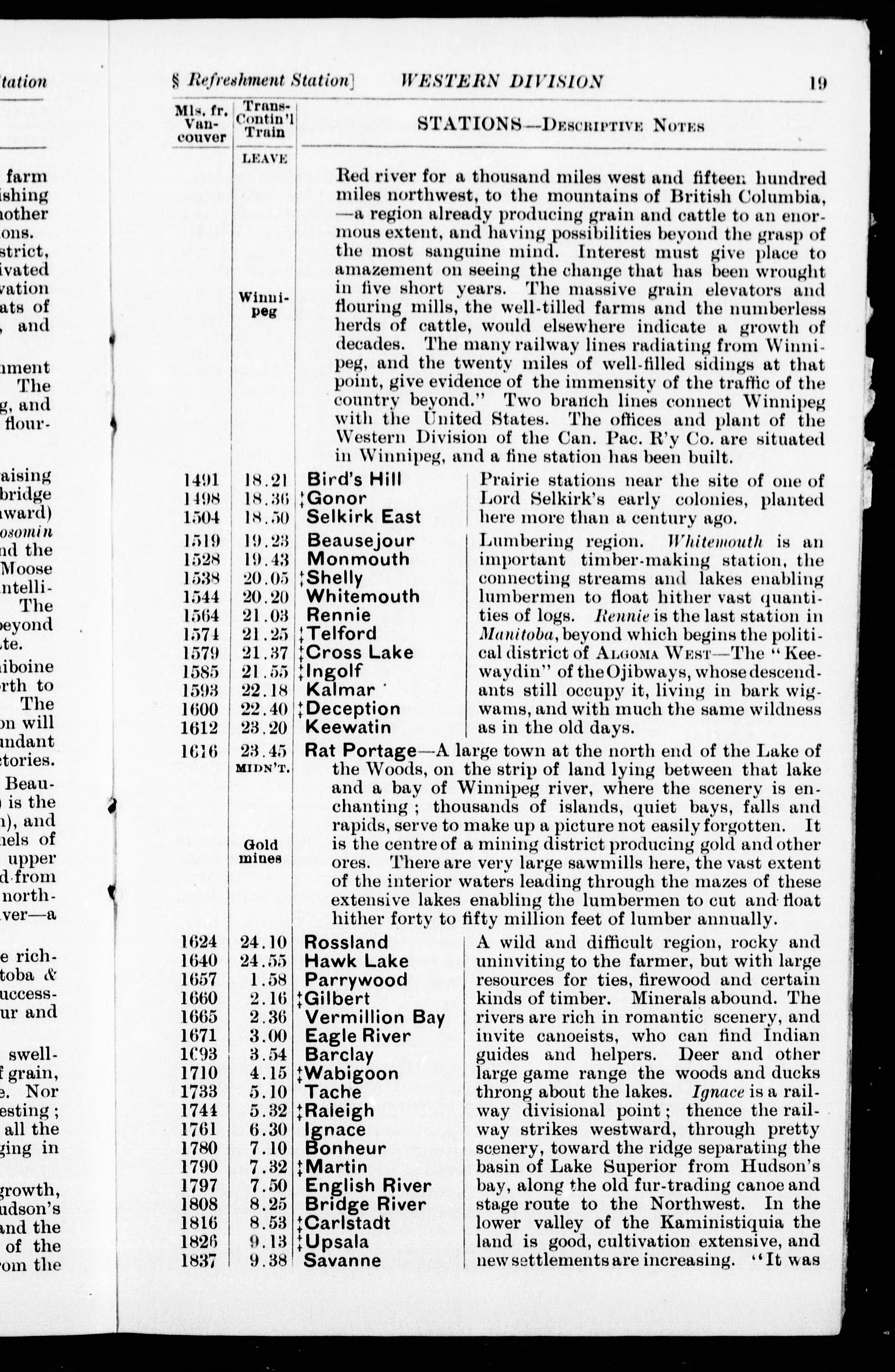 A Time table with notes of the eastbound transcontinental train, the Great Lakes route, and the Chicago and Toronto line