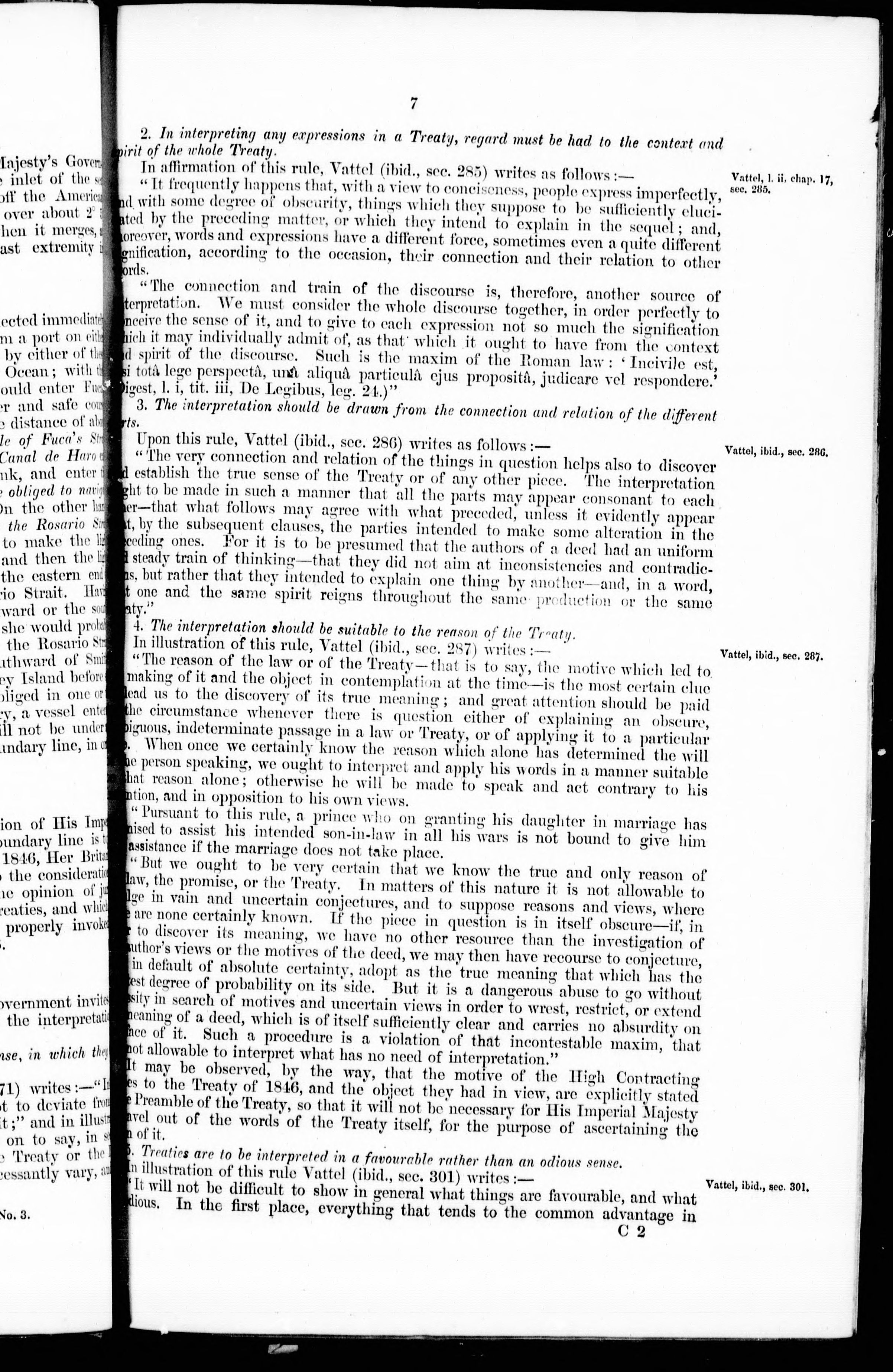 "For Maps and Charts referred to in this Case, see North America No. 7. Presented to both Houses of Parliament by Command of Her Majesty. 1873".
