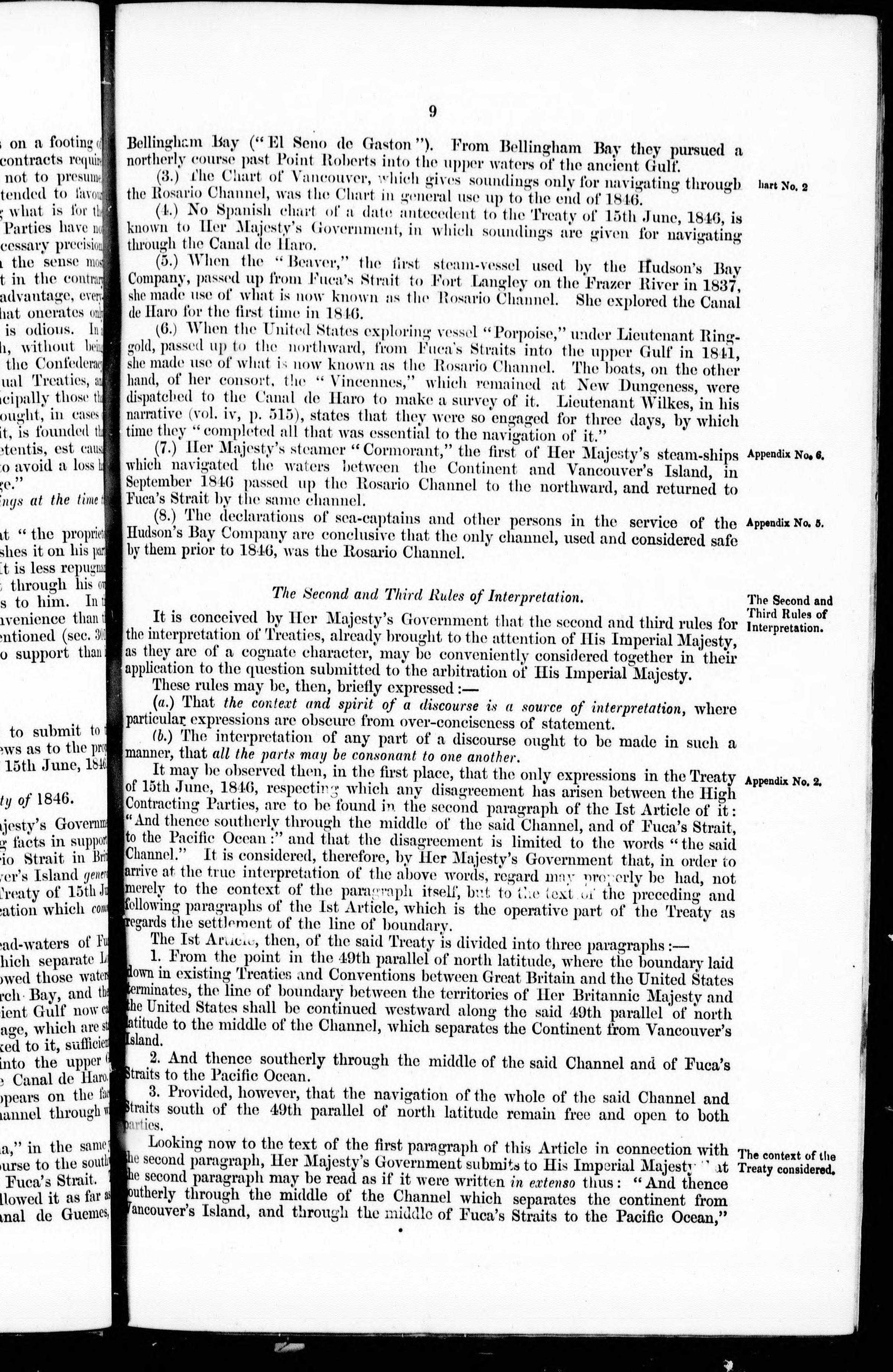 "For Maps and Charts referred to in this Case, see North America No. 7. Presented to both Houses of Parliament by Command of Her Majesty. 1873".