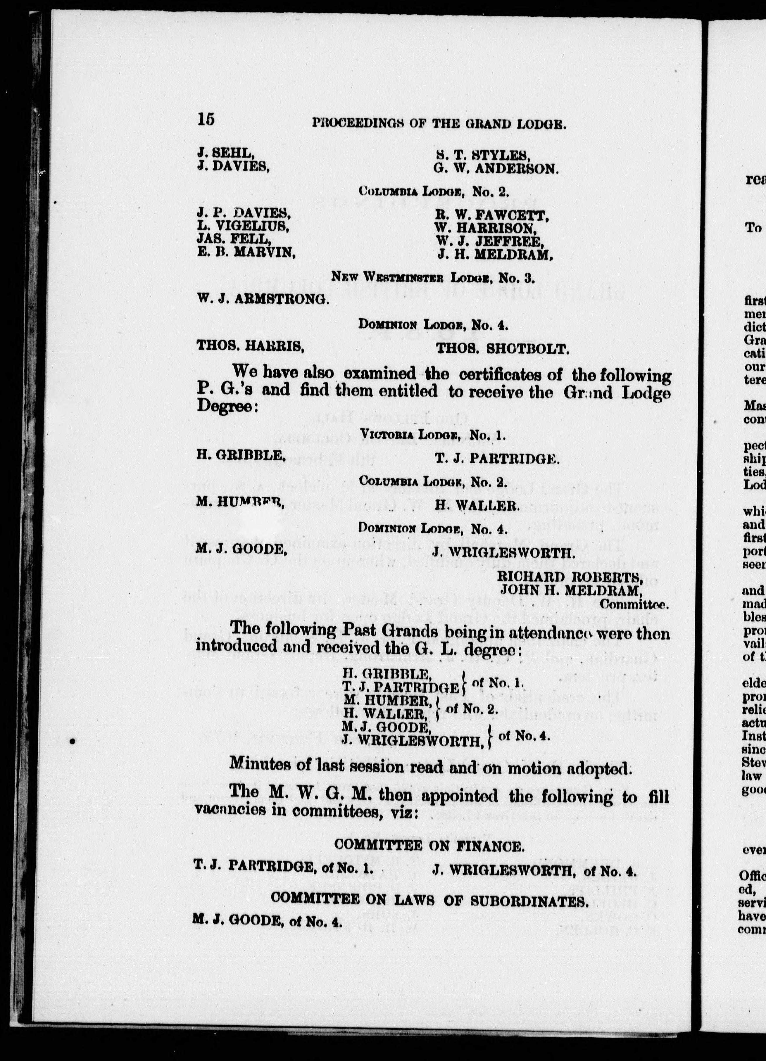 Independent Order of Oddfellows. Grand Lodge of British Columbia. Communication (1st : 1875 : Victoria, B.C.).