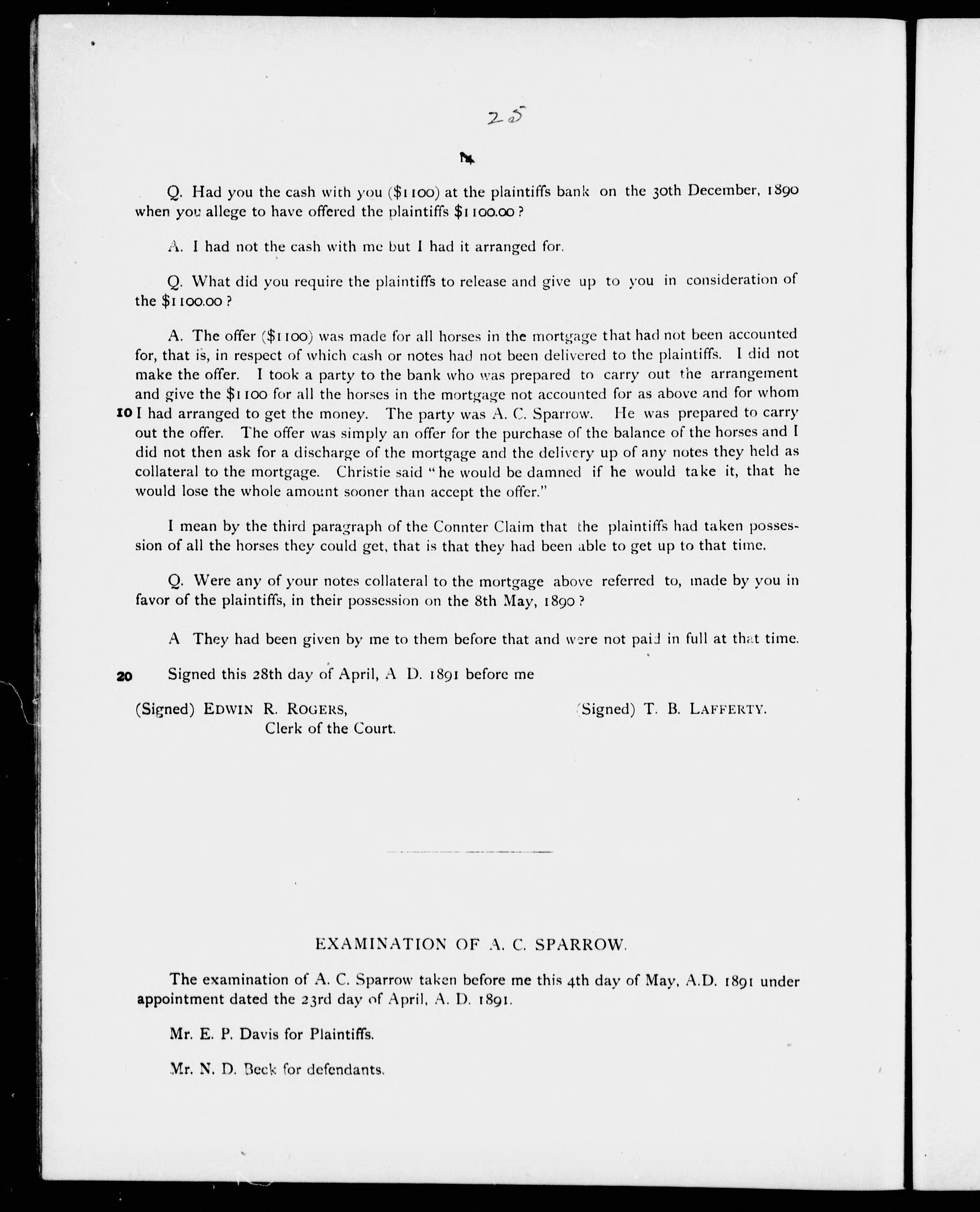 In the Supreme Court of the Northwest Territories, between Le Jeune, Smith & Co. (plaintiffs), appellants, and T.B. Lafferty and A. C. Sparrow, defendants, and H.A. Sparrow (defendant), respondent : amended appeal book : Smith & Watson, advocates for appellants; Lougheed, McCarthy & McCarter, advocates for respondents. - Adresse bibliographique
