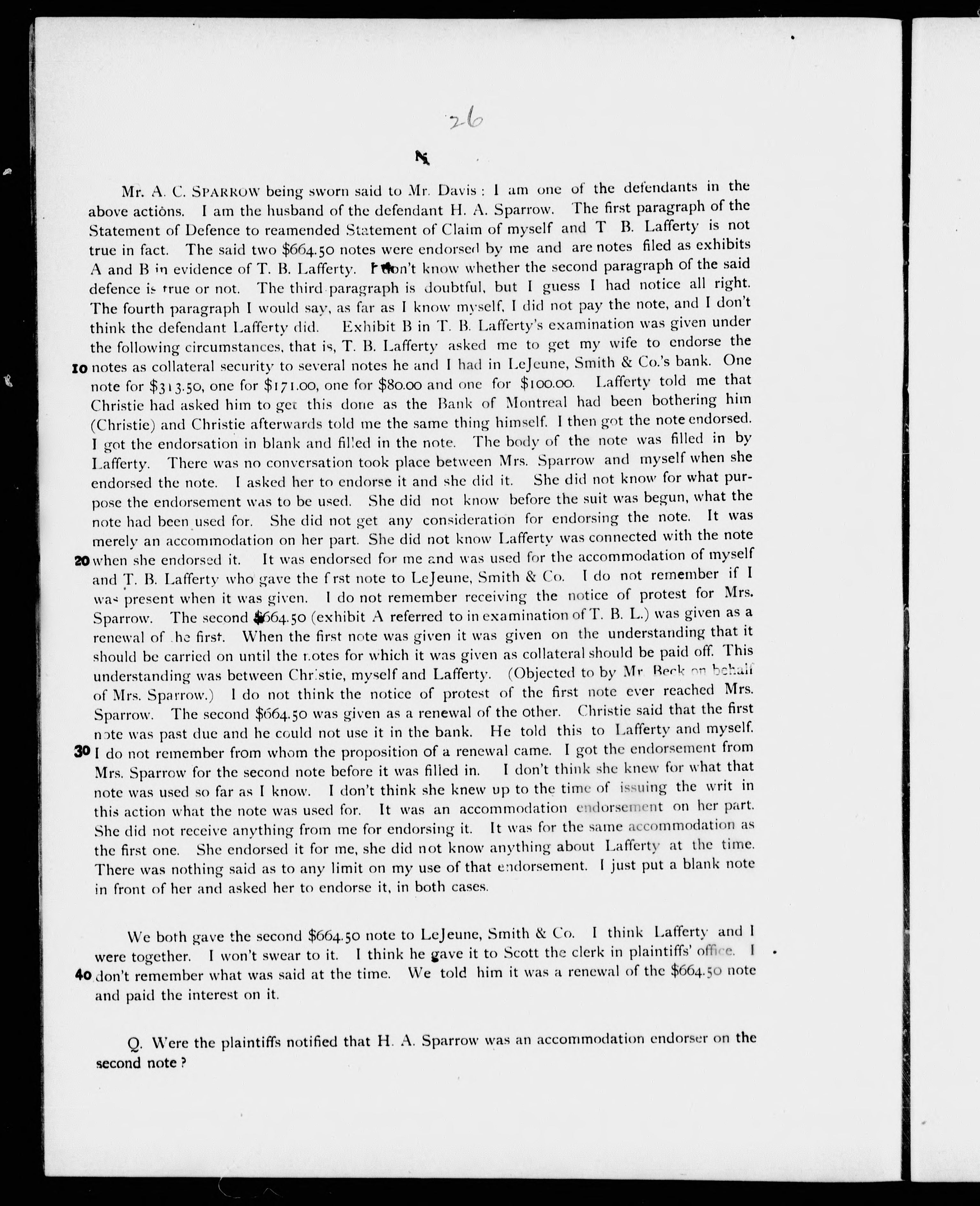 In the Supreme Court of the Northwest Territories, between Le Jeune, Smith & Co. (plaintiffs), appellants, and T.B. Lafferty and A. C. Sparrow, defendants, and H.A. Sparrow (defendant), respondent :