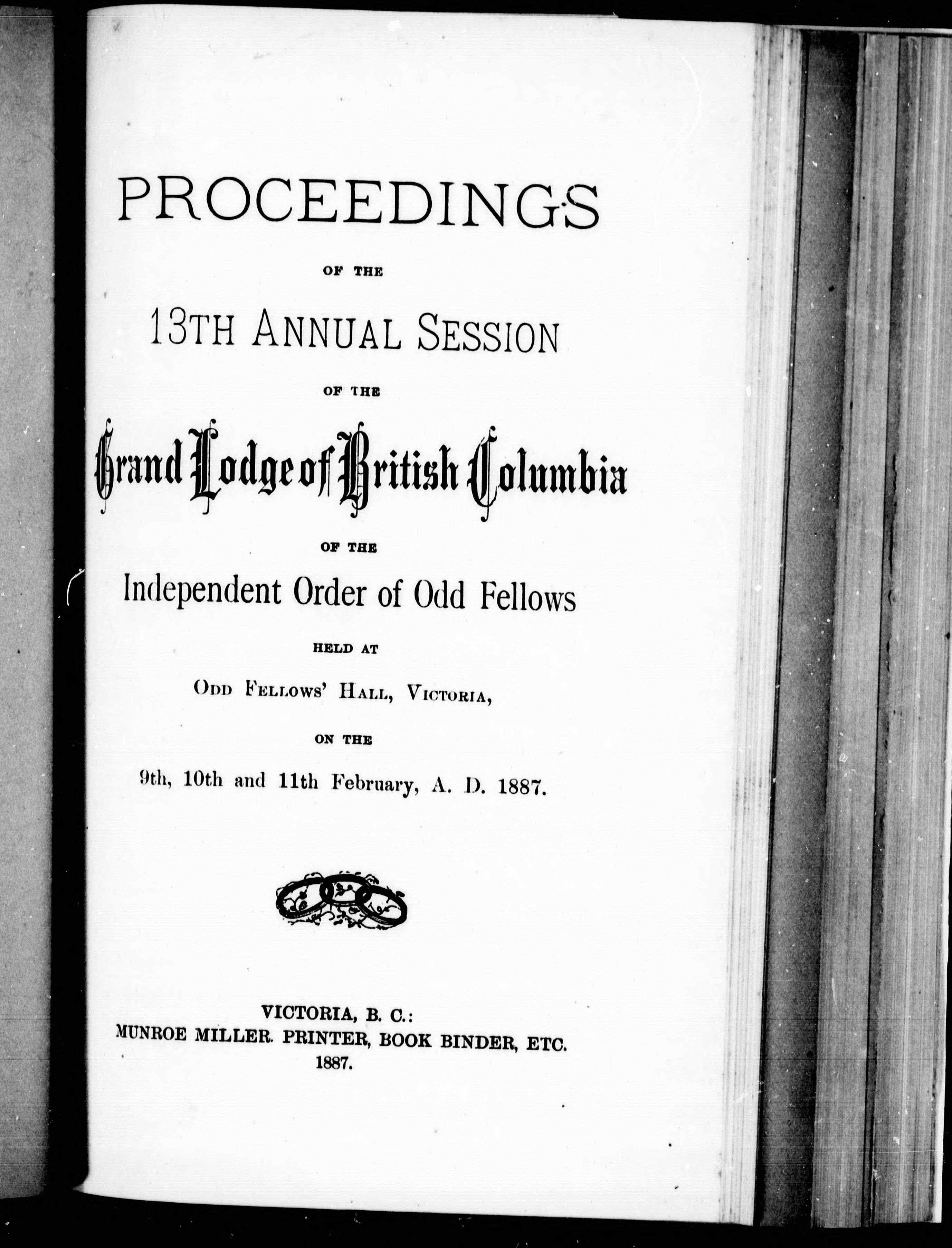 Independent Order of Oddfellows. Grand Lodge of British Columbia. Session (13th : 1887 : Victoria, B.C.).