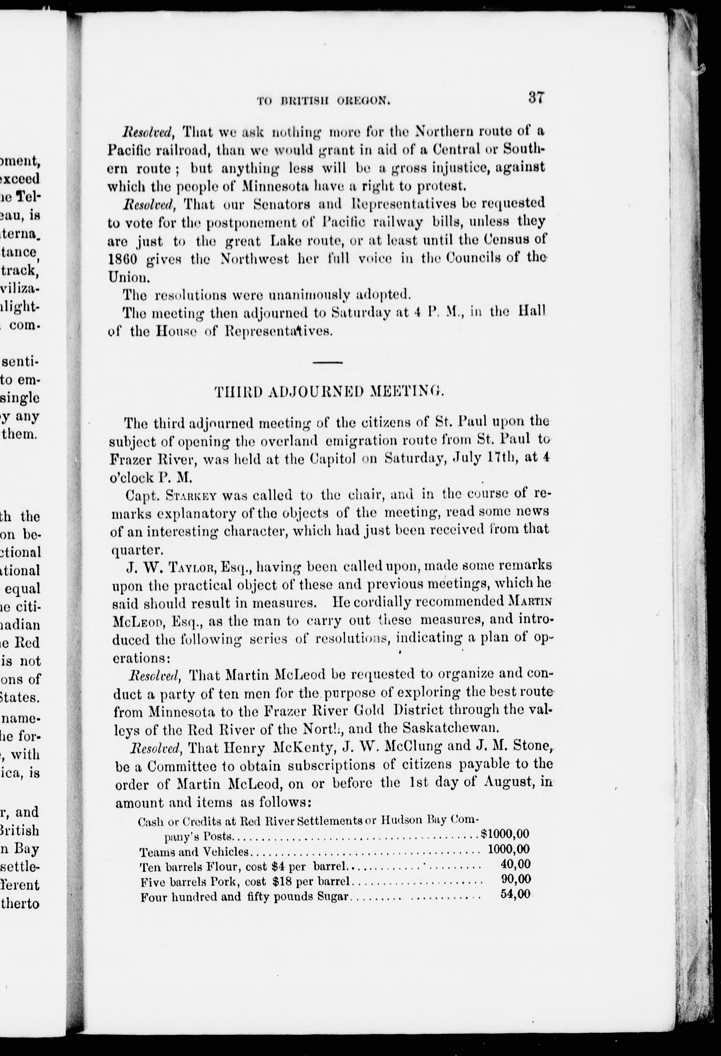 Report from a select committee of the House of Representatives, on the overland emigration route from Minnesota to British Oregon :