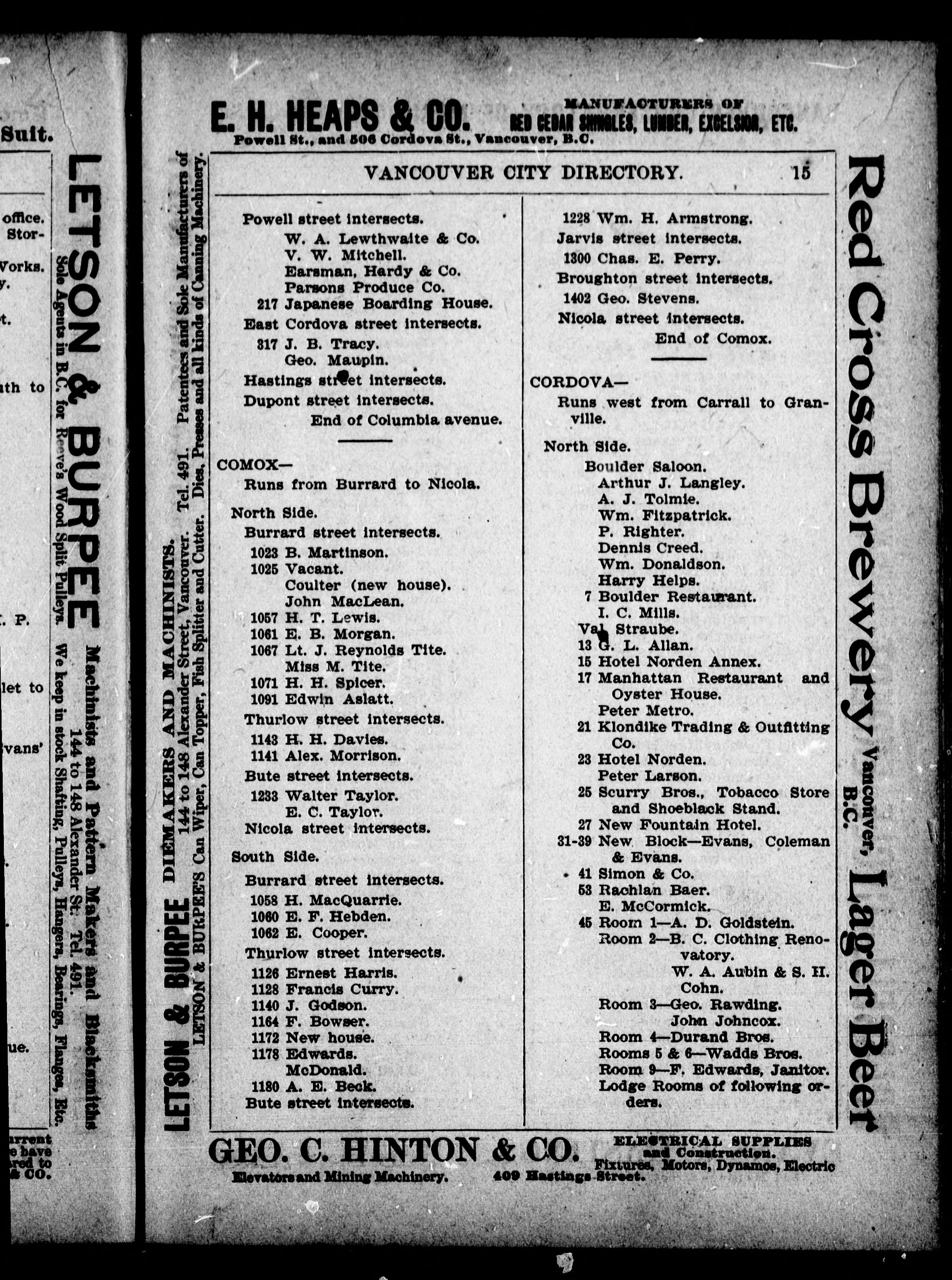 Aide Vancouver, B.C. : R.E. Green, [1900?]; 330 images, 323 avec recherche en texte intégral