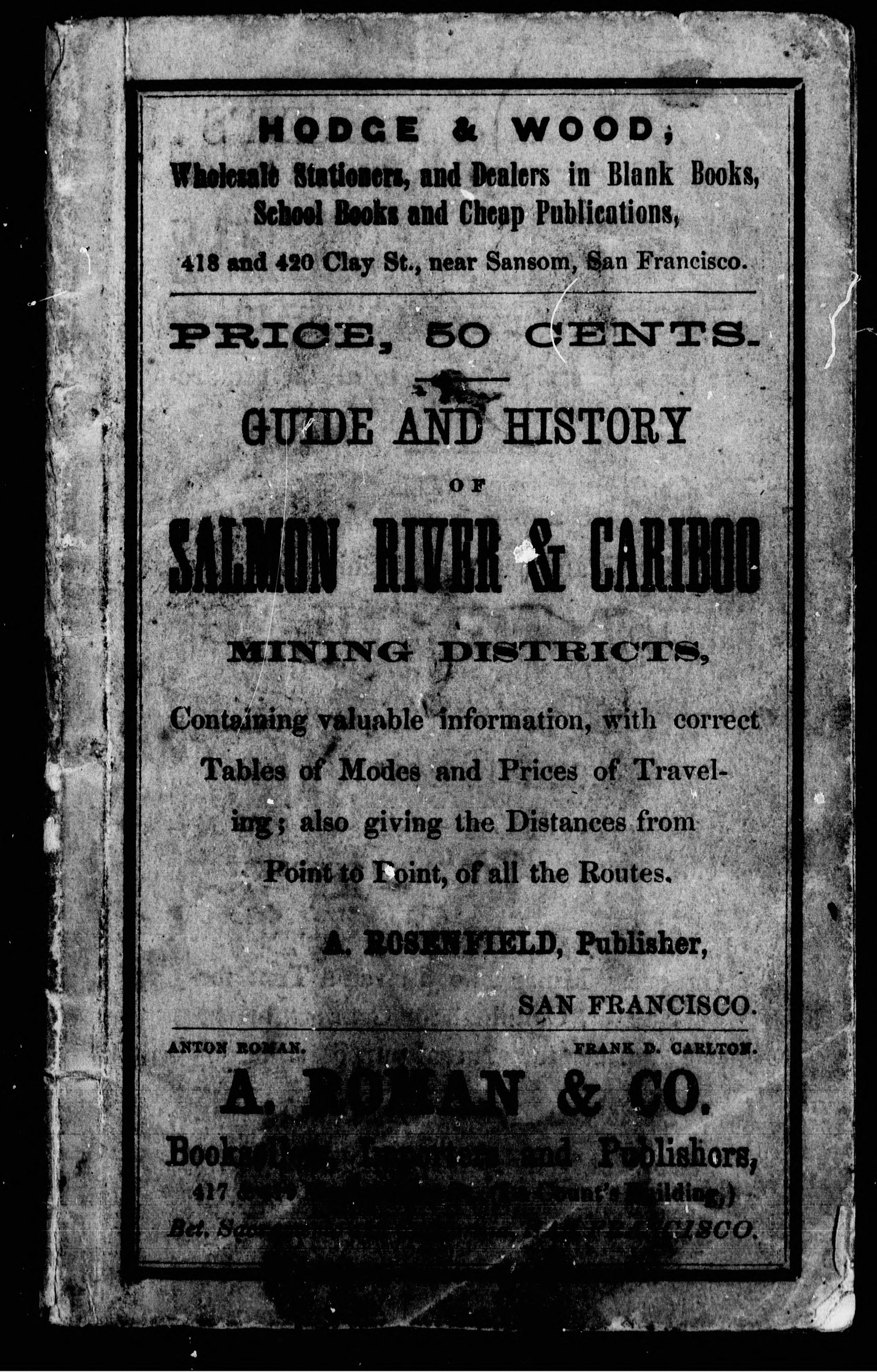 Cover title: Guide and history of Salmon River and Cariboo mining districts, containing valuable information, with correct tables of modes and prices of travelling ; also giving the distances from point to point, of all the routes.