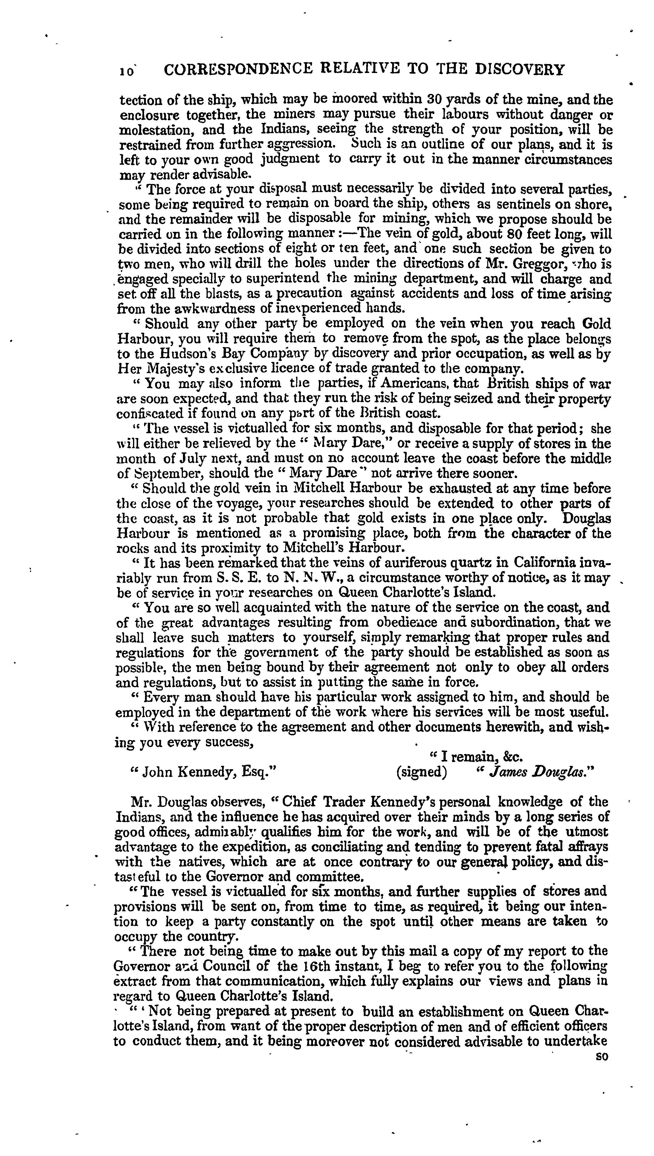 Running title: Correspondence relative to the discovery of gold at Queen Charlotte's Island.