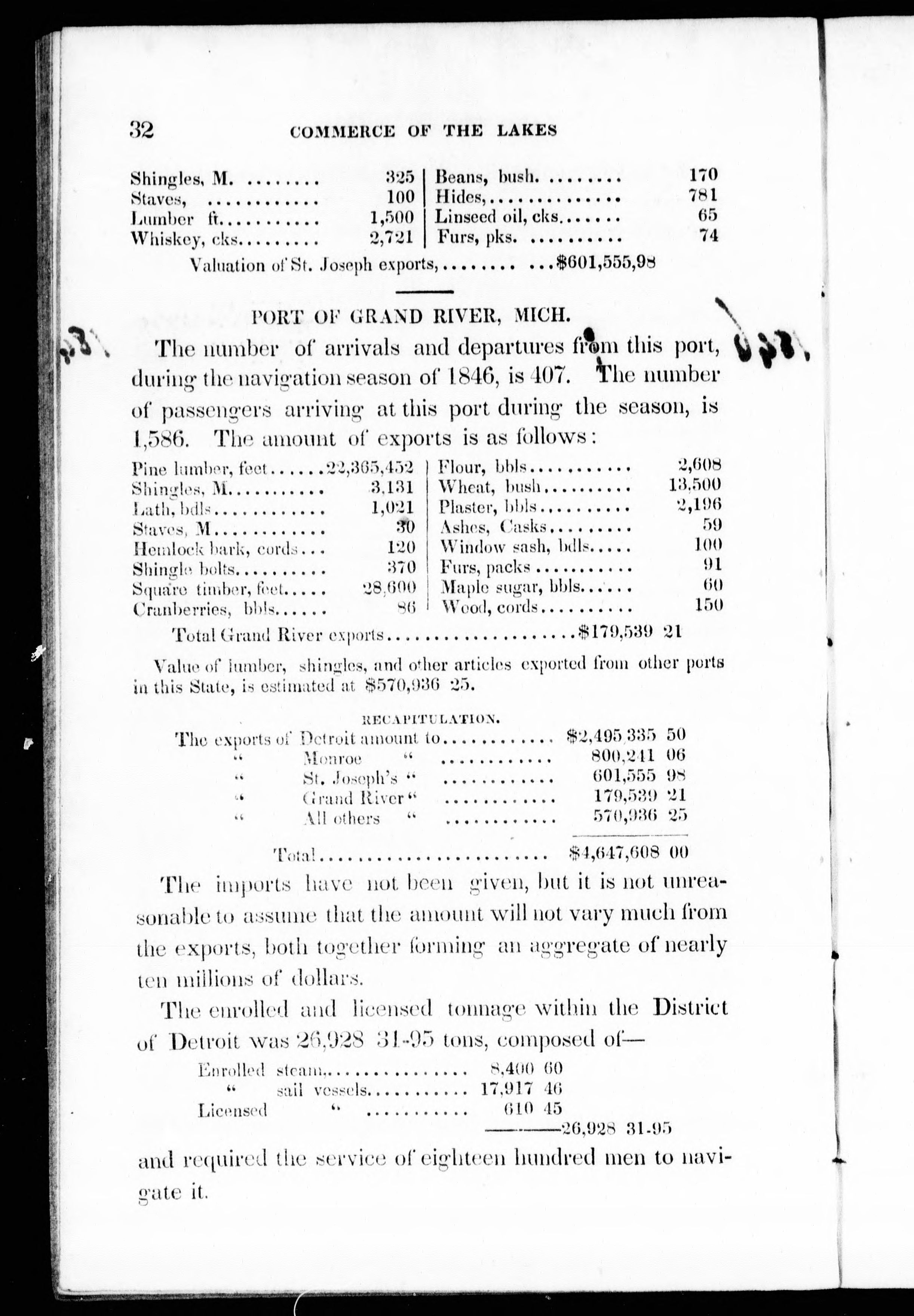 At head of title: Commerce of the lakes.