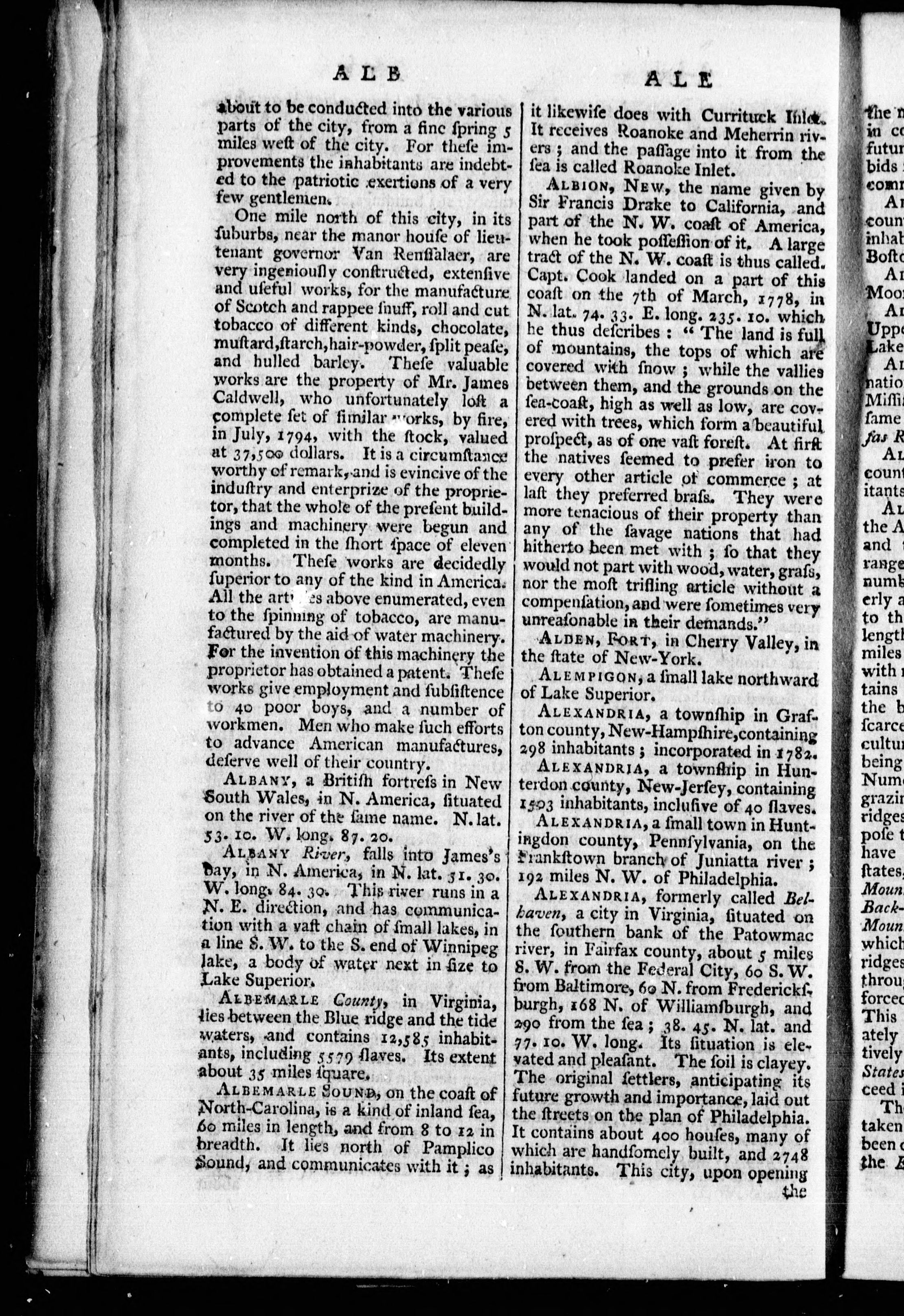 American gazetteer : exhibiting in alphabetical order a much more full and accurate account than has been given of the states, provinces, counties, cities, towns, villages, rivers, bay, harbours, gulfs, sounds, capes, mountains, forts, Indian tribes & new discoveries on the American continent, also of the West India islands and other islands appendant to the continent, and those newly discovered in the Pacific Ocean : describing the extent, boundaries, population, government, productions, commerce ... with a particular description of the Georgia Western Territory : the whole comprising upwards of seven thousand distinct articles