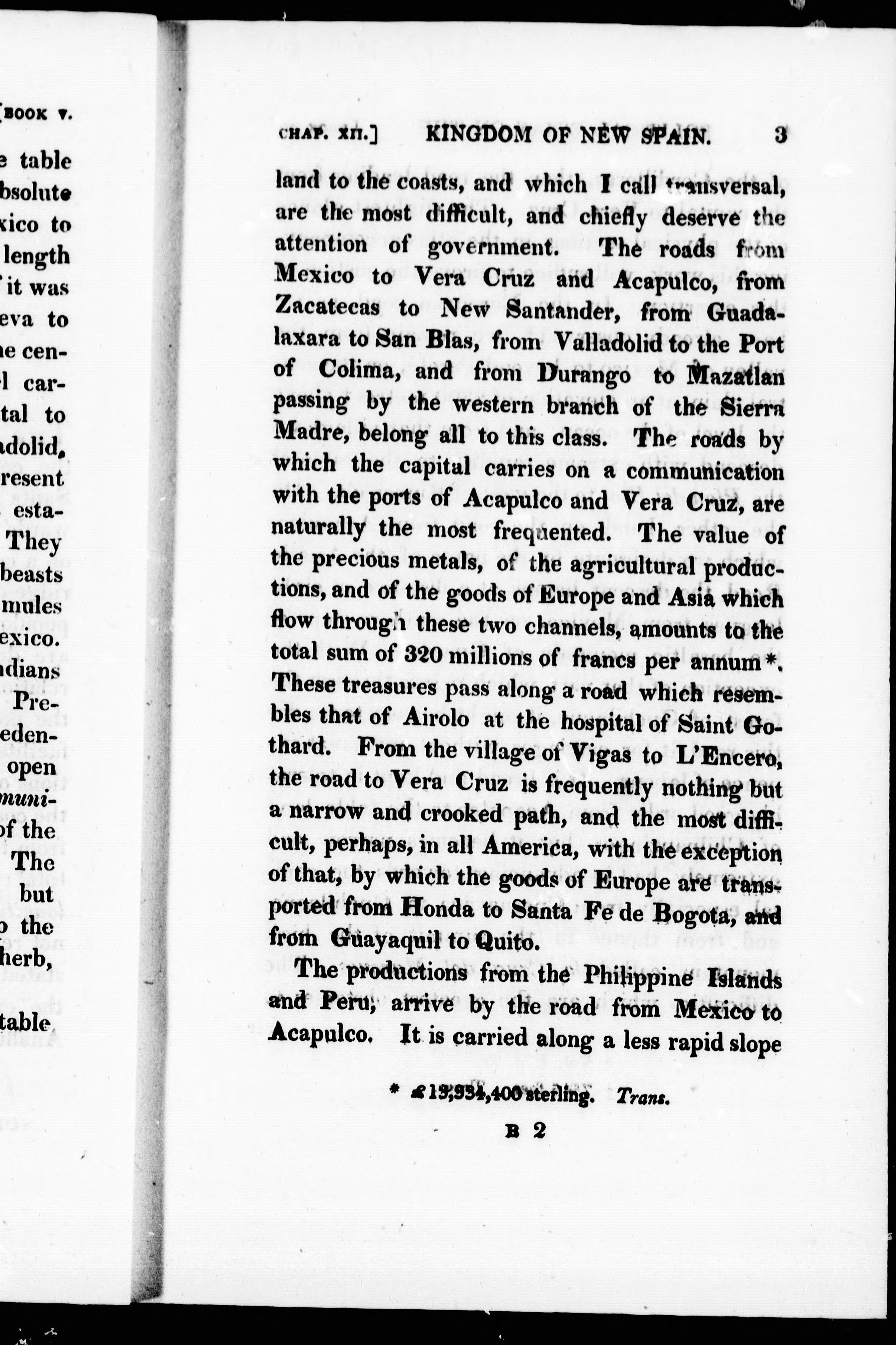 Political essay on the kingdom of New Spain : containing researches relative to the geography of Mexico, the extent of its surface and its political division into intendancies, the physical aspect of the country, the population, the state of agriculture and manufacturing and commercial industry, the canals projected between the South Sea and Atlantic Ocean, the crown revenues, the quantity of the precious metals which have flowed from Mexico into Europe and Asia, since the discovery of the new continent and the military defence of New Spain