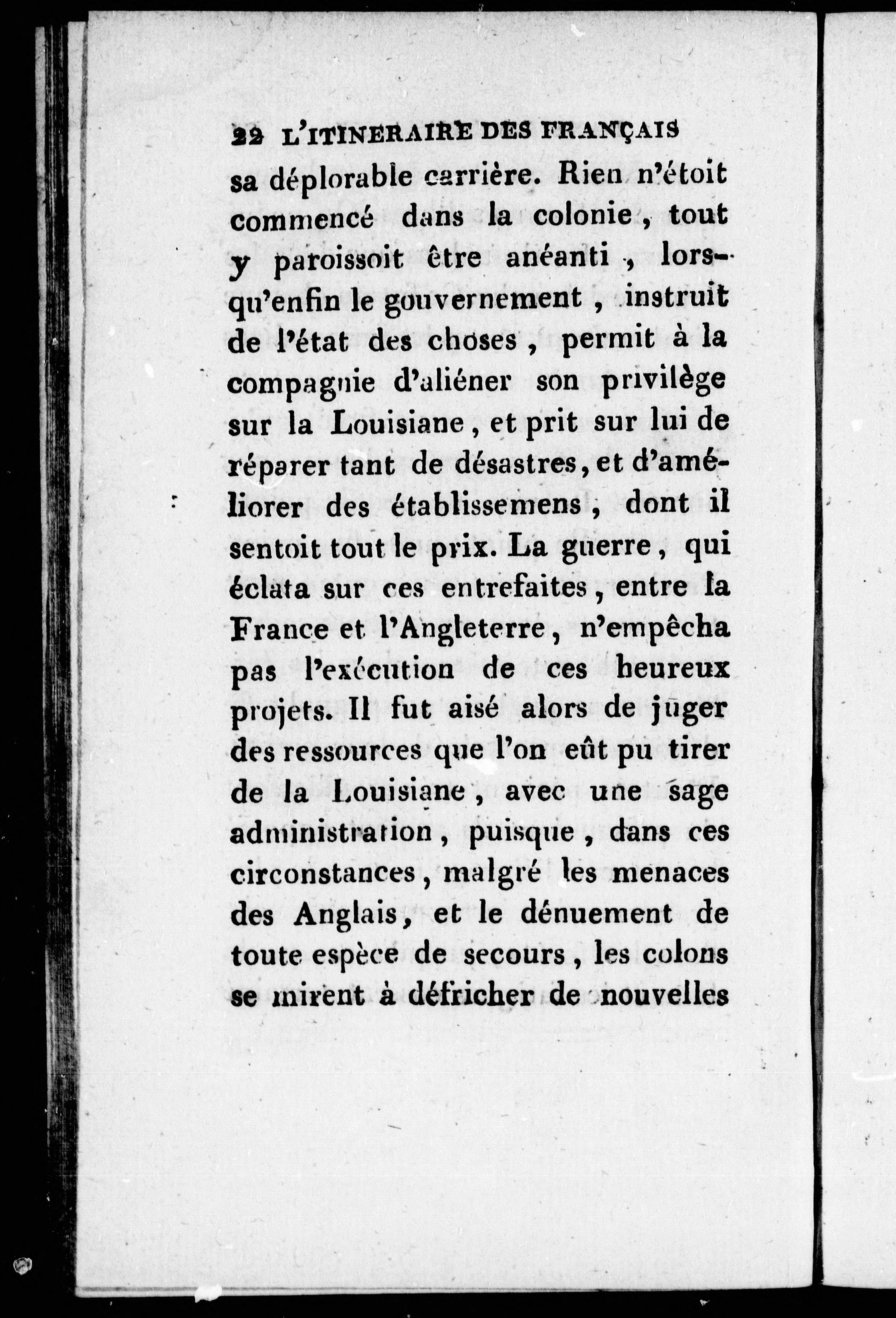 L'itinéraire des Français dans la Louisiane : contenant l'histoire de cette colonie française, sa description, le tableau des moeurs des peuples qui l'habitent, l'état de son commerce au moment de sa cession à l'Espagne, et le degré de prospérité dont elle est susceptible : d'après les renseignemens et les relations les plus authentiques