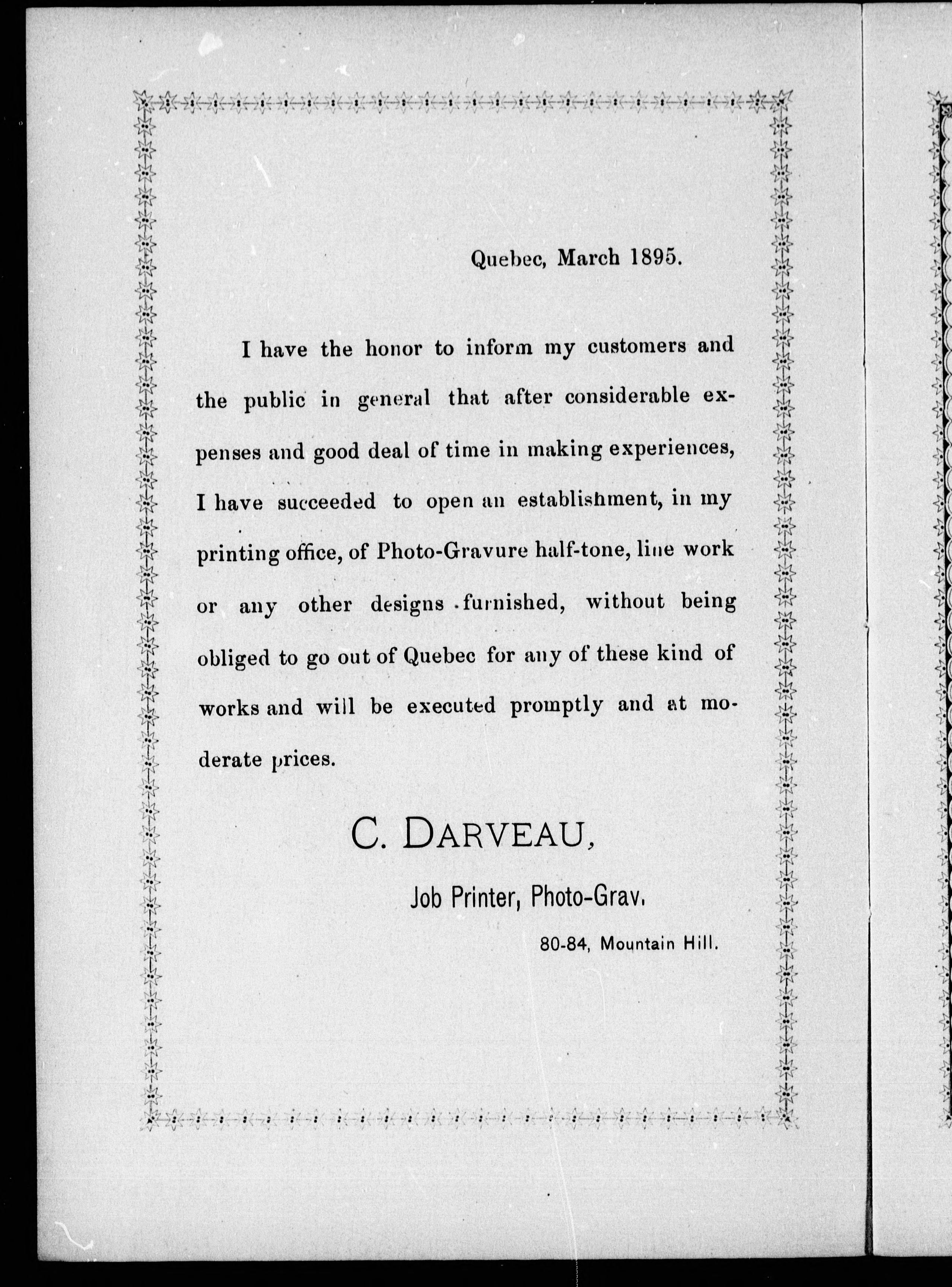 Spécimen de photo-gravure de l'imprimerie C. Darveau, Québec.