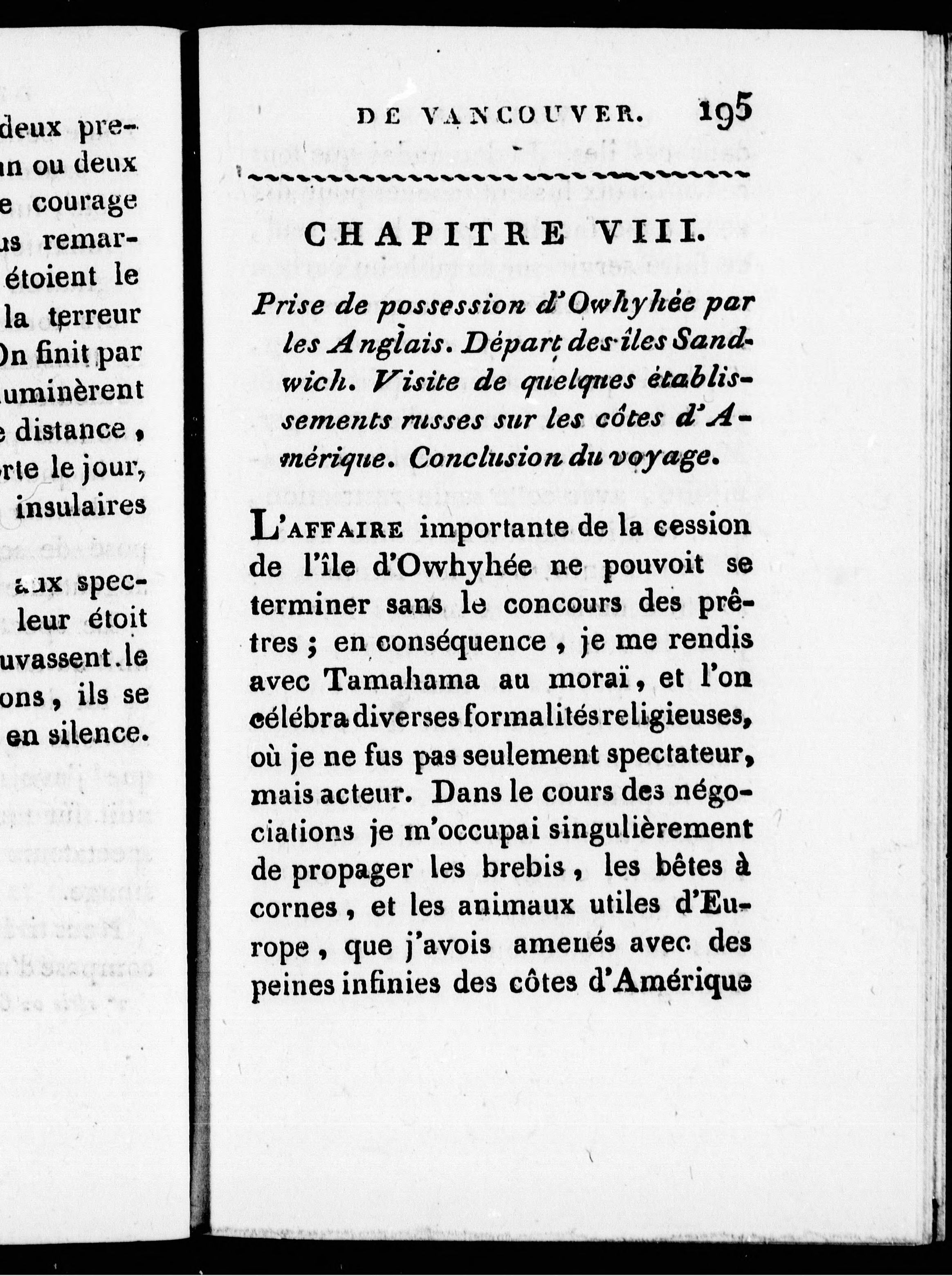 P. de t. de la collection: Bibliothèque géographique et instructive des jeunes gens, ou Recueil de voyages intéressants dans toutes les parties du monde, pour l'instruction et l'amusement de la jeunesse traduit de l'allemand et de l'angl. par M. Breton. Orné de cartes et figures. Sixième année. Tome onzième. Voyage de Vancouver.