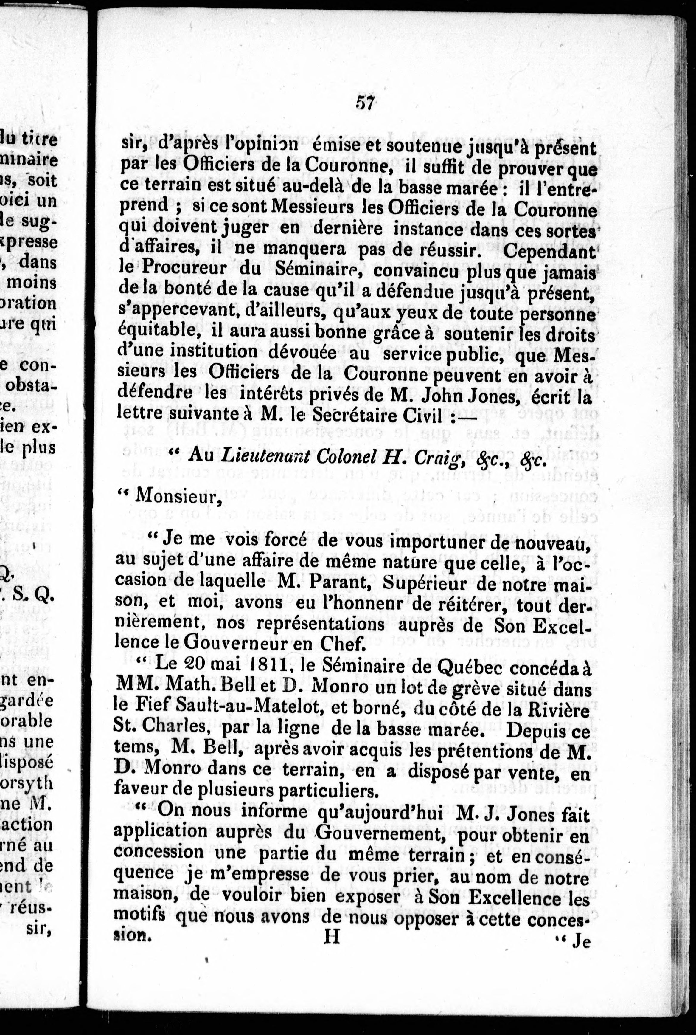 Mémoire concernant les grèves de Sault-au-Matelot de la chatellenie de Coulnge, et autres que le Séminaire de Québec possede a titre de fief.