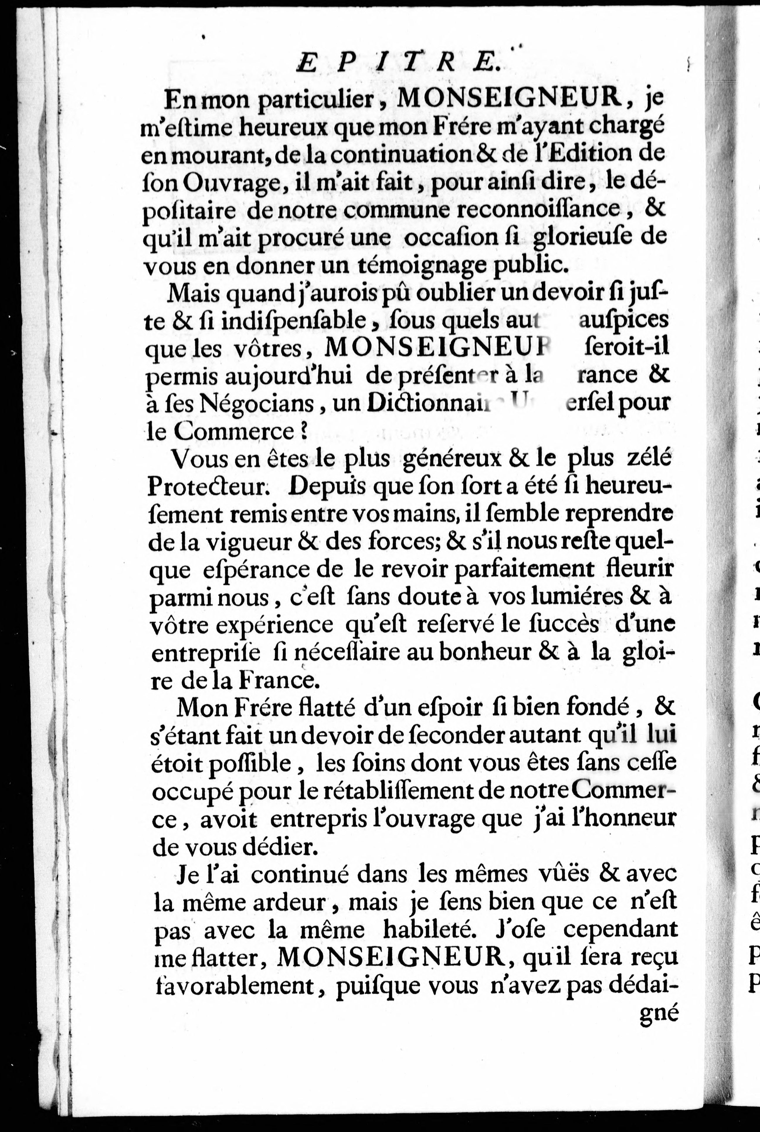 Faux-titre: Dictionnaire universel de commerce, d'histoire naturelle, et des arts et metiers : divisé en III volumes and en IV parties : tome premier, A--C.