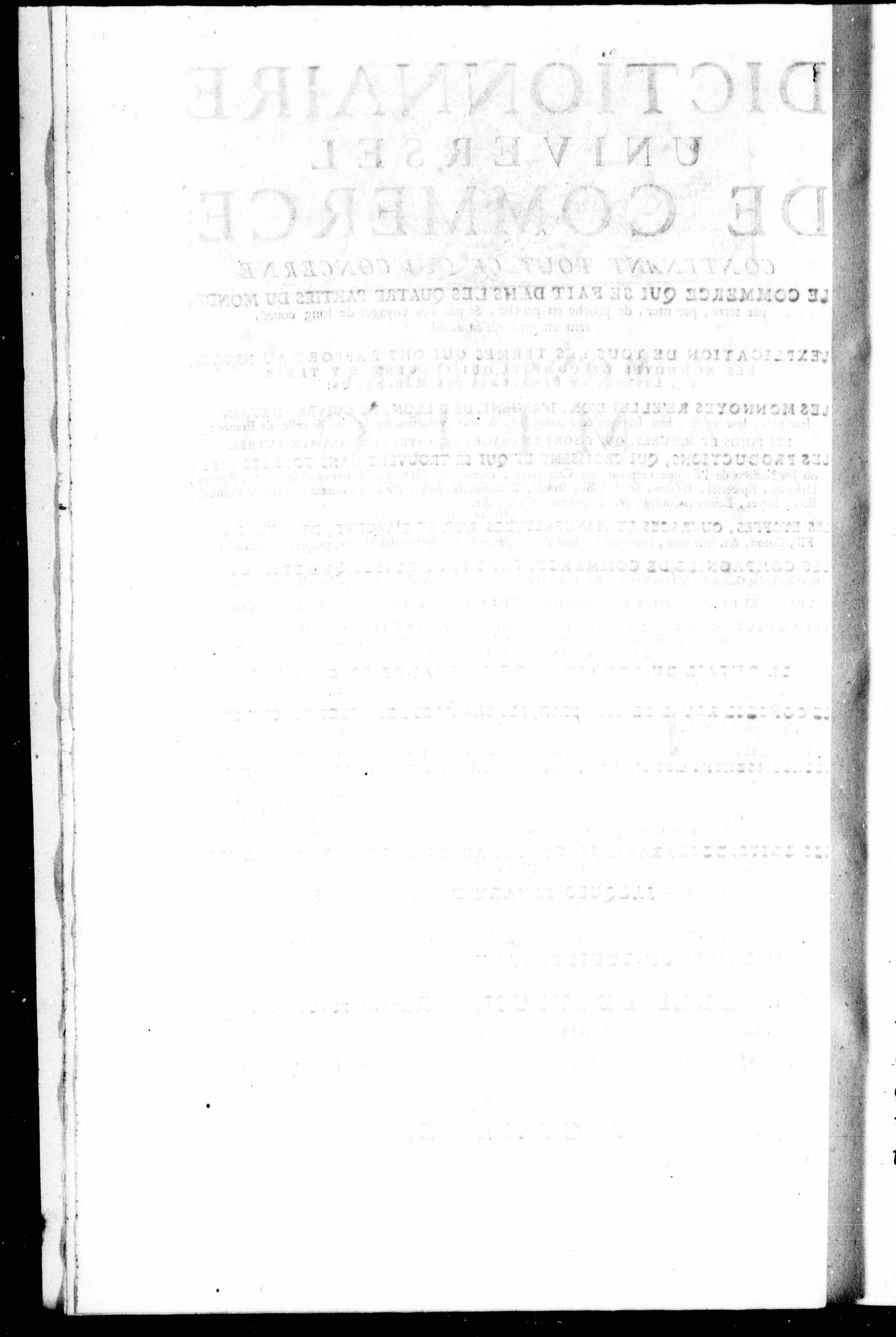 Faux-titre: Dictionnaire universel de commerce, d'histoire naturelle, et des arts et metiers : divisé en III volumes and en IV parties : tome premier, A--C.