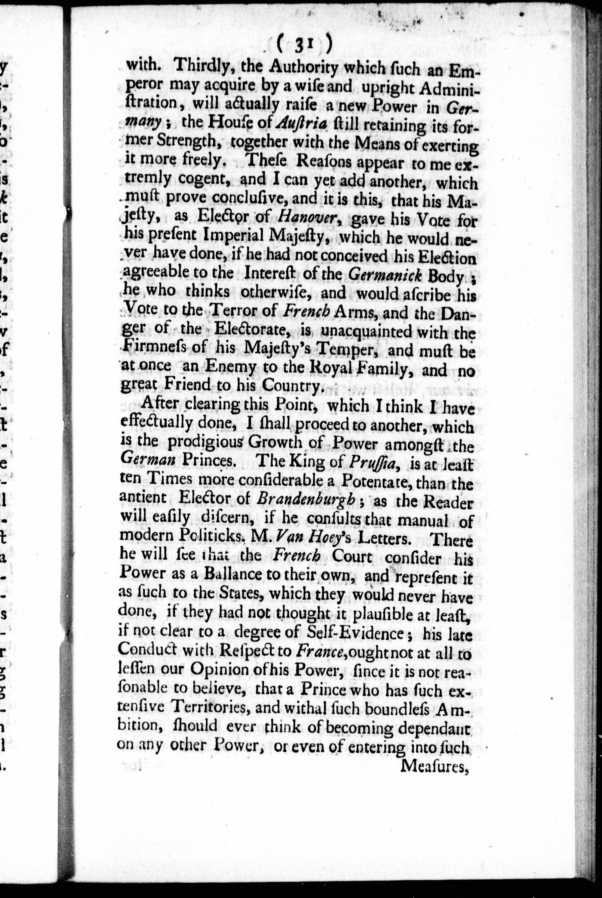 German politicks [sic], or, The modern system examined and refuted : wherein the natural strength of Germany and France are compared, the nature of the ballance [sic] of power explained and our inability to maintain, in our present circumstances, a war on the continent is demonstrated. - Published