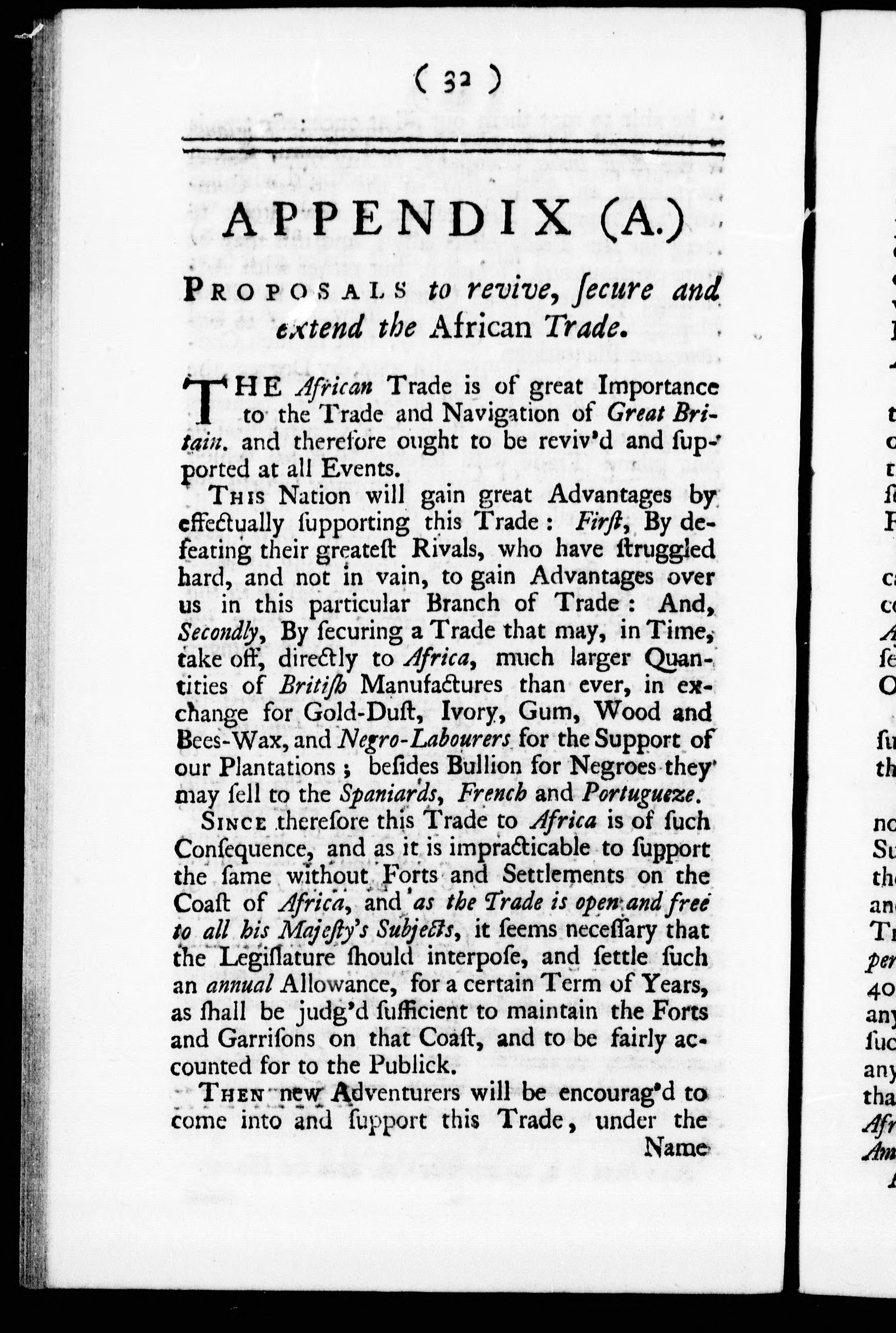 The Present state of the British and French trade to Africa and America consider'd and compar'd : with some propositions in favour of the trade of Great Britain.