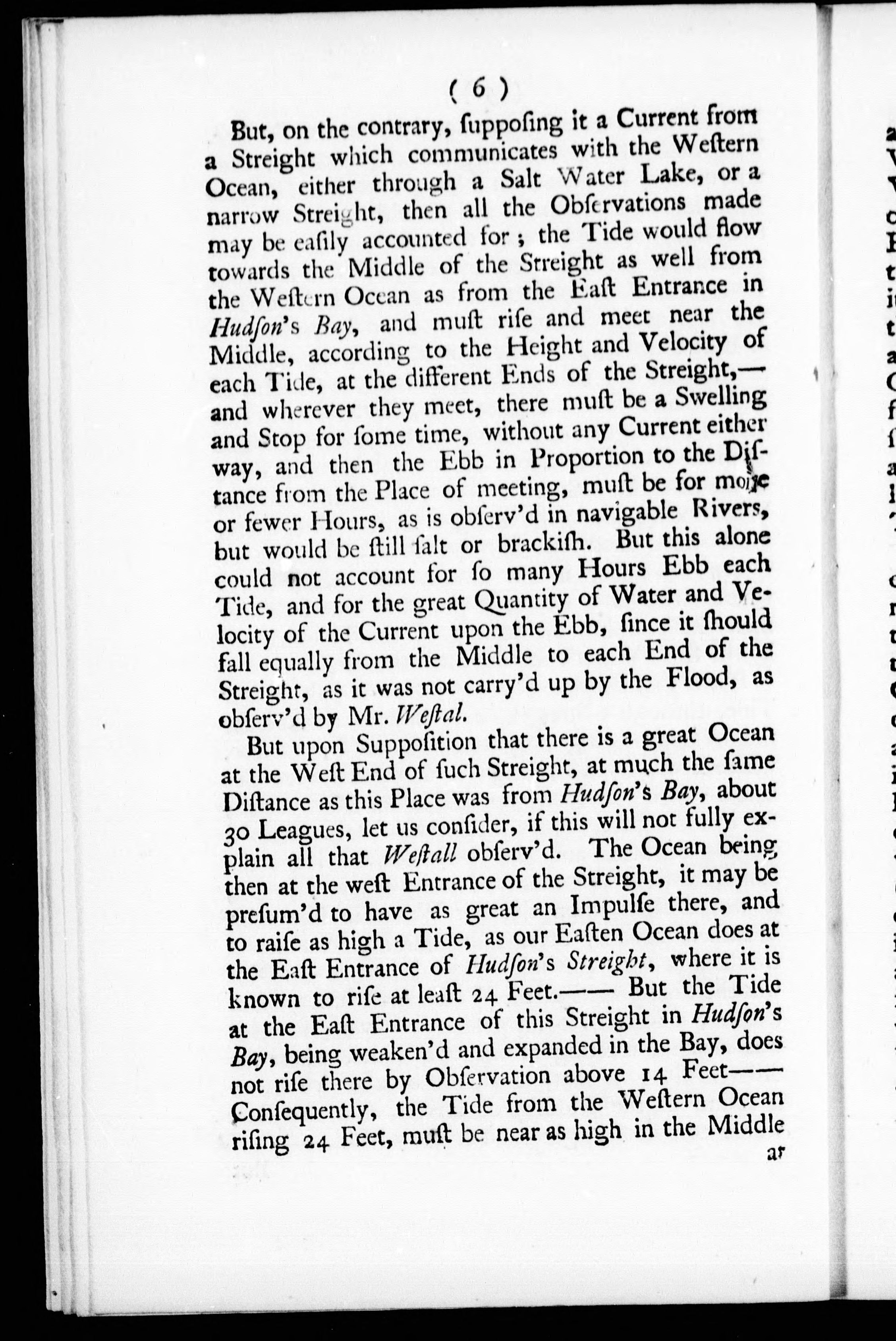 - Reasons to shew, that there is a great probability of a navigable passage to the western American ocean, through Hudson's Streights, and Chesterfield Inlet : from the observations made on board the ships sent upon the late discovery ; supported by affidavits, which coincides with several former accounts : humbly offered to the consideration of Lords and Commons assembled in Parliament.