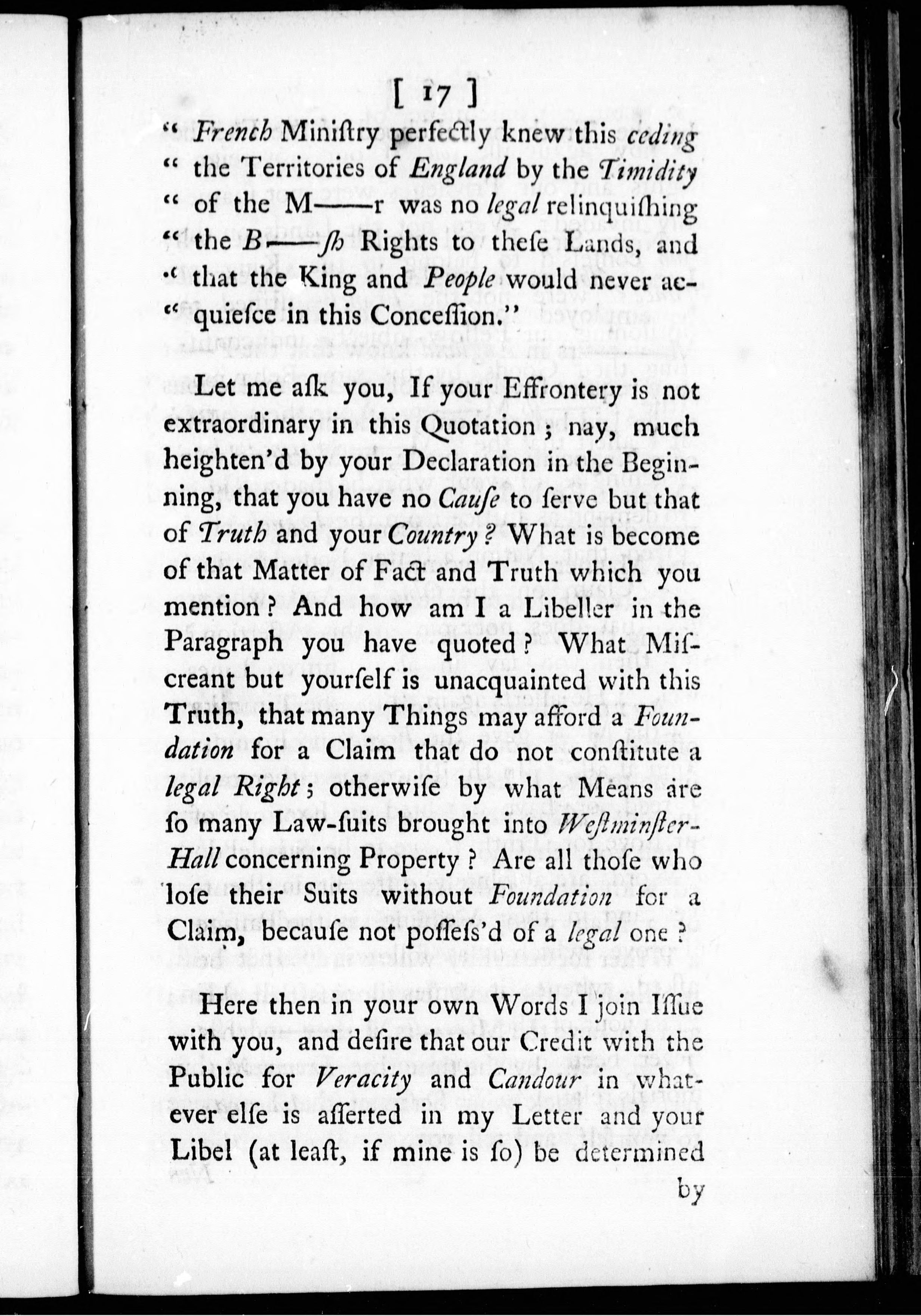 - An answer to a pamphlet call'd, The conduct of the ministry impartially examined : in which it is proved that neither imbecillity nor ignorance in the m--r have been the causes of the present unhappy situation of this nation