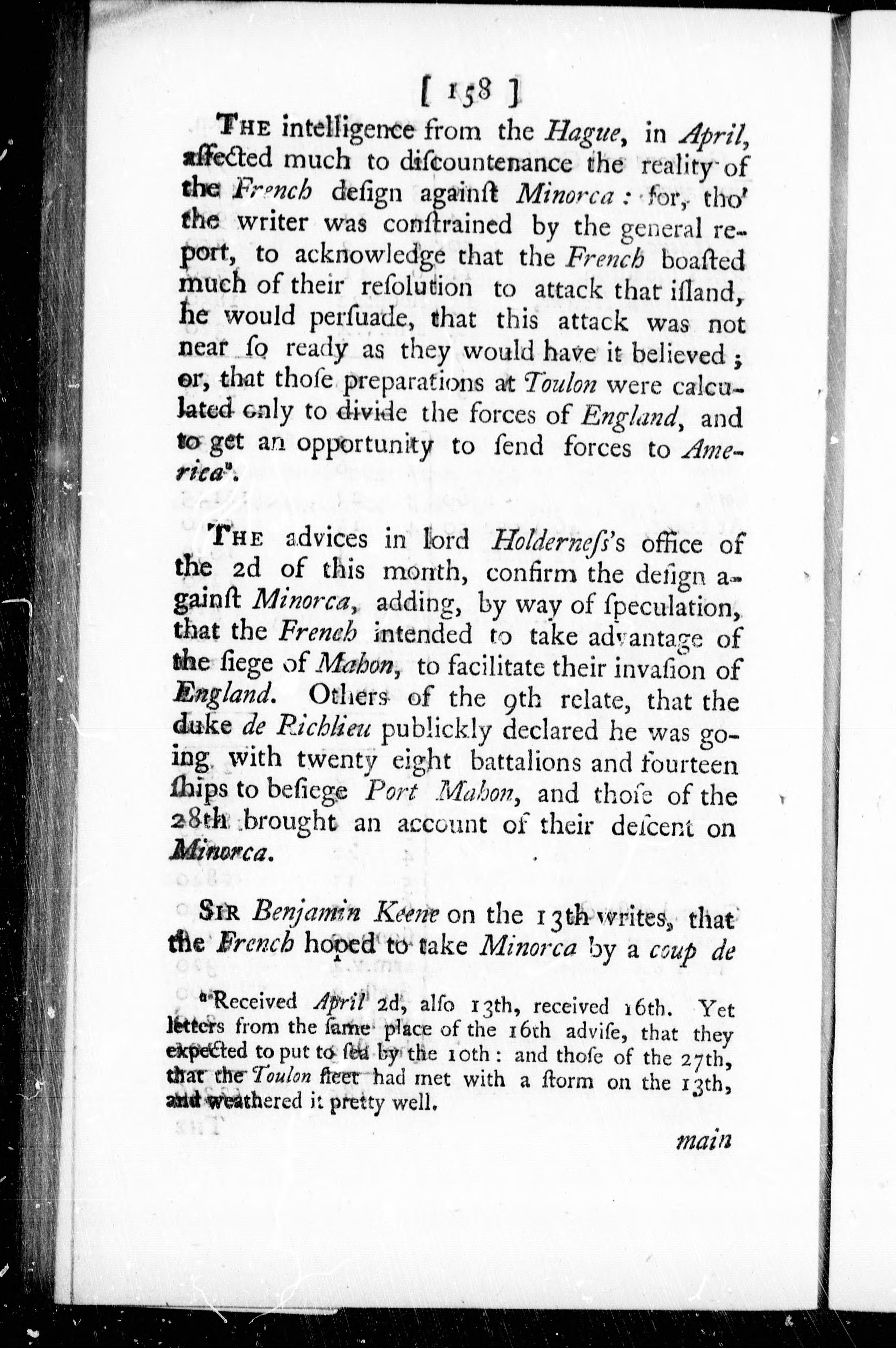 Port Mahon (Espagne) -- Siège, 1756. - Document source