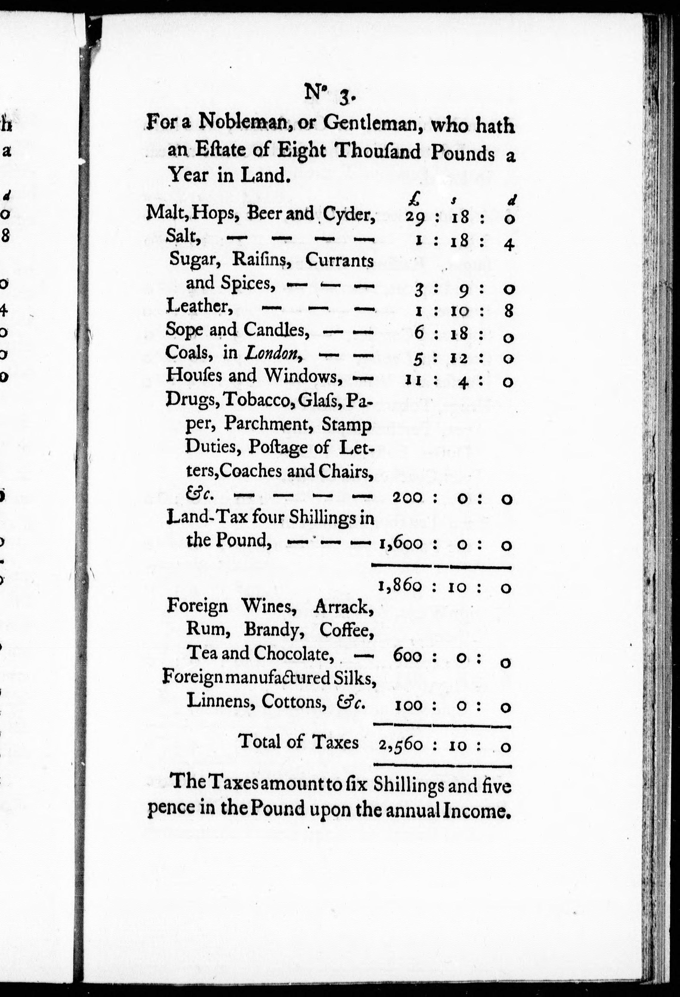 Calculations of the present taxes yearly paid by a family of each rank, degree, or class
