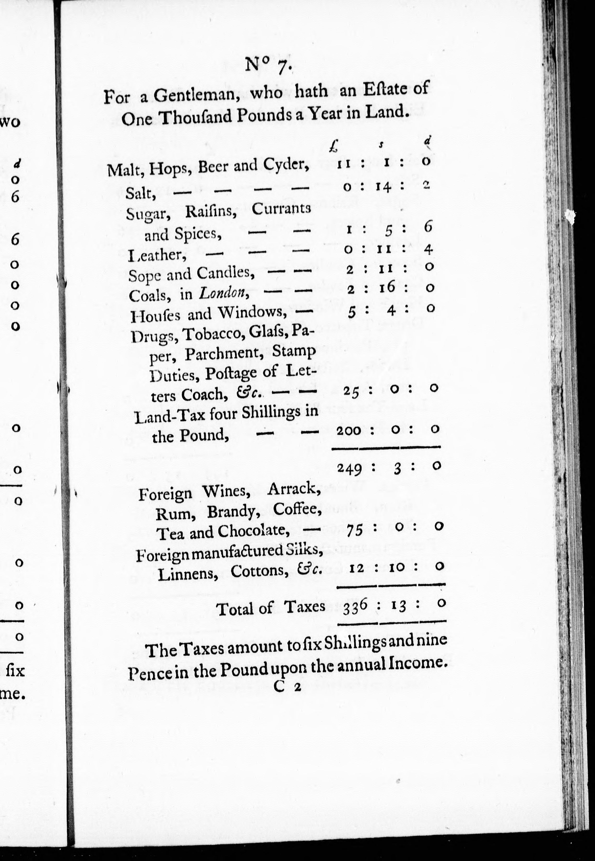 Calculations of the present taxes yearly paid by a family of each rank, degree, or class